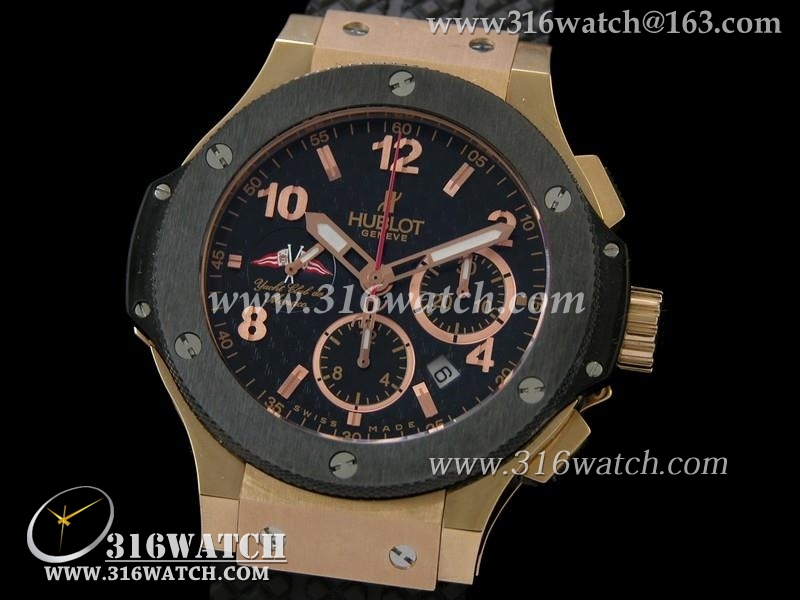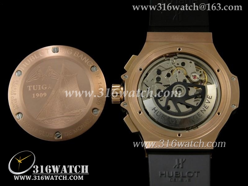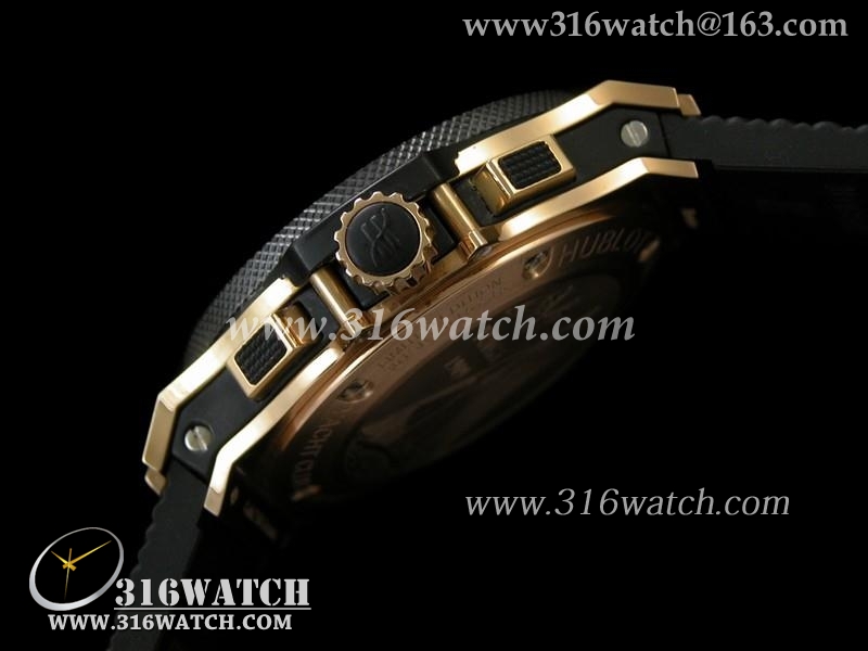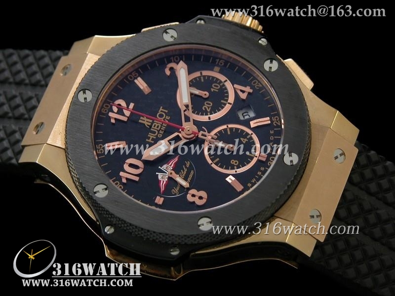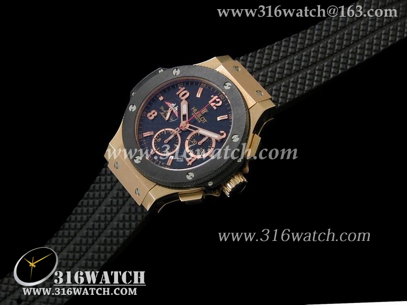 宇舶Hublot-大爆炸系列 18 k玫瑰金电镀 黑色碳纤维表盘 大红秒针 黑色橡胶格仔表帶 计时7750机芯 高仿1比1宇舶 HB0166