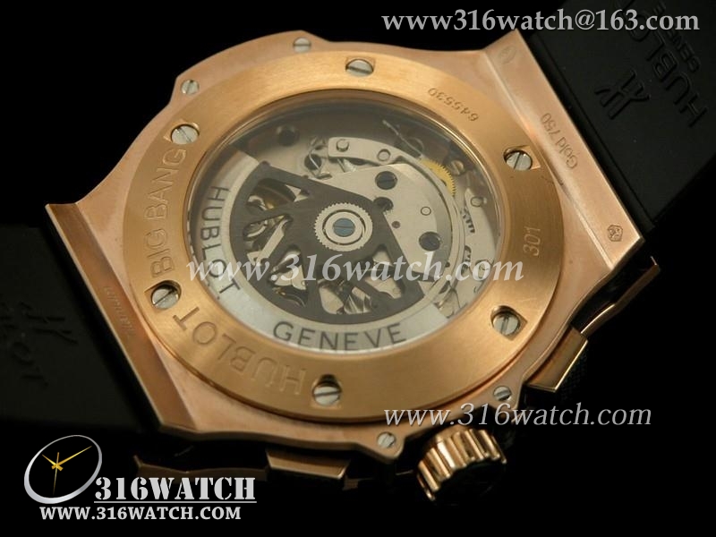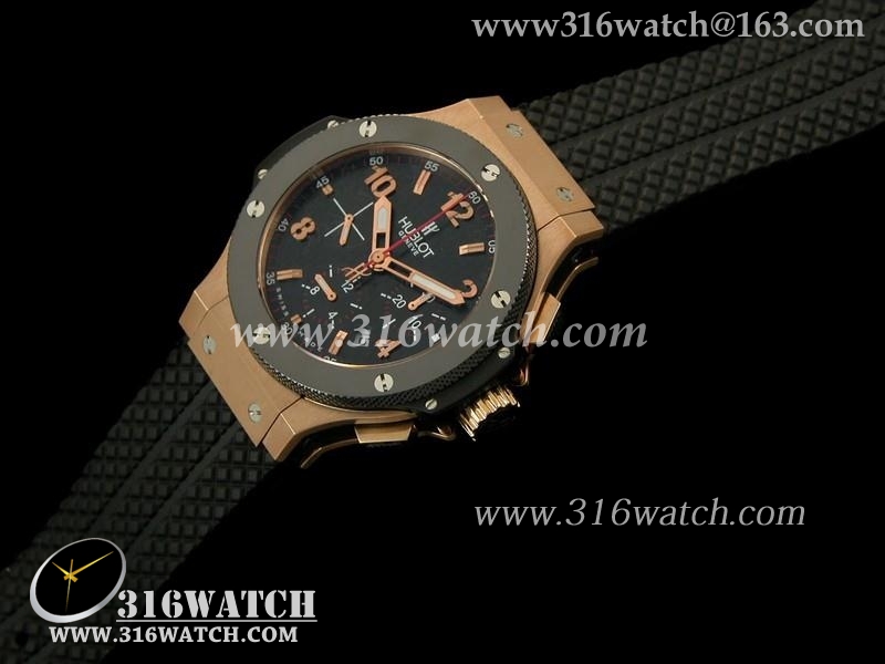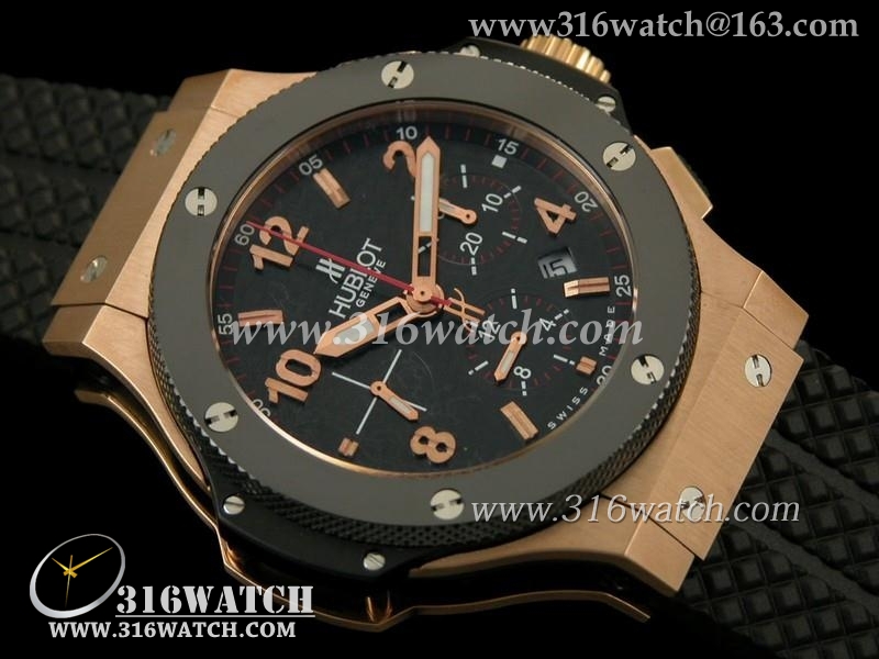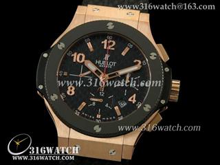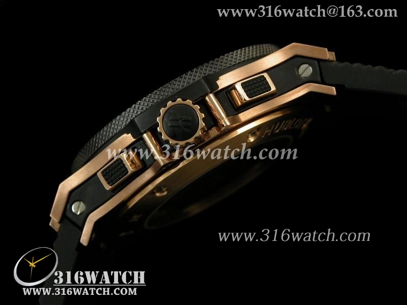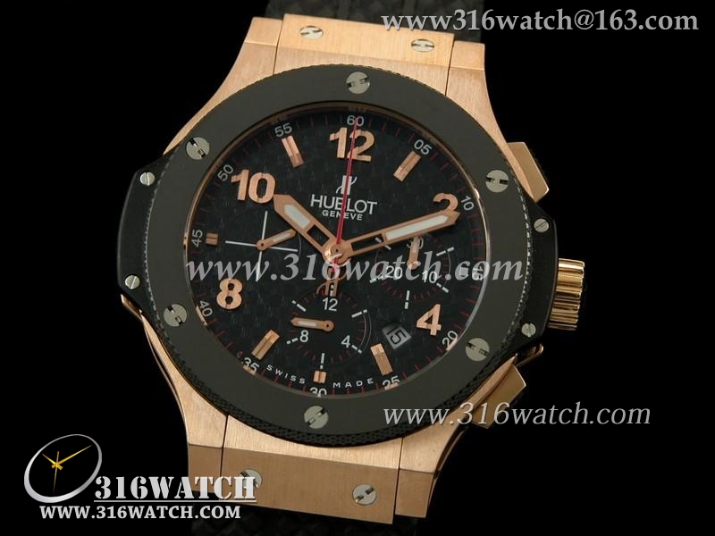 宇舶Hublot-大爆炸系列 18 k玫瑰金电镀 黑色碳纤维表盘 大红秒针 黑色橡胶格仔表帶 计时7750机芯 高仿1比1宇舶 HB0165