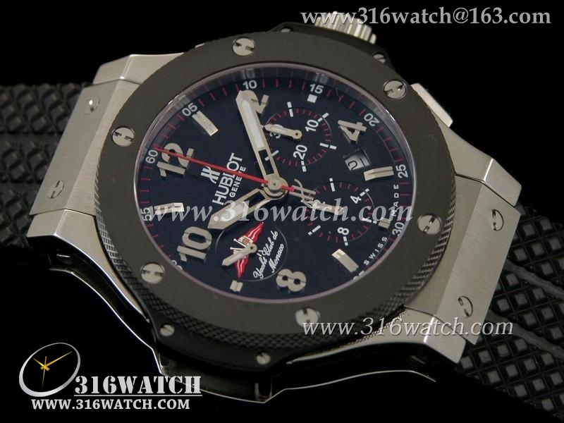 宇舶Hublot-大爆炸系列 陶瓷边框 黑色碳纤维表盘 黑色橡胶格仔表帶 计时7750机芯 1比1宇舶手表 HB0162