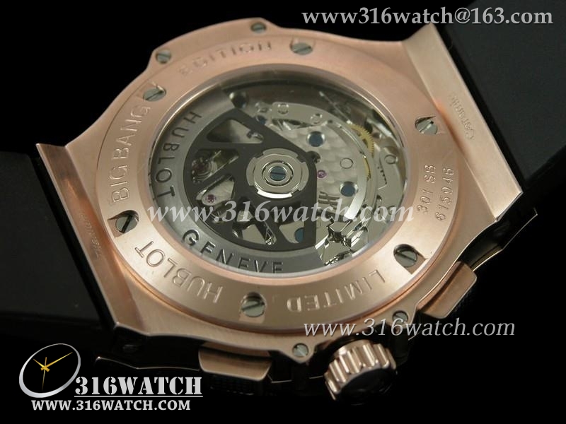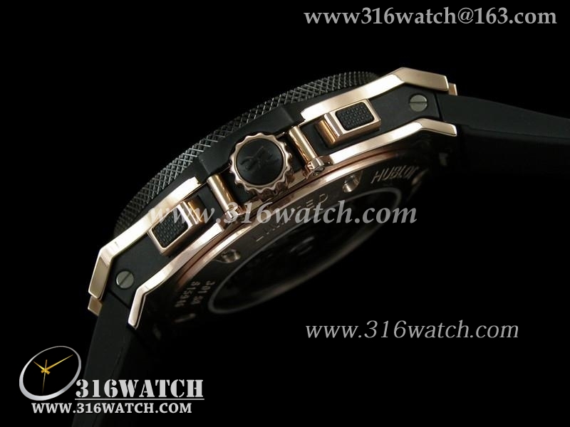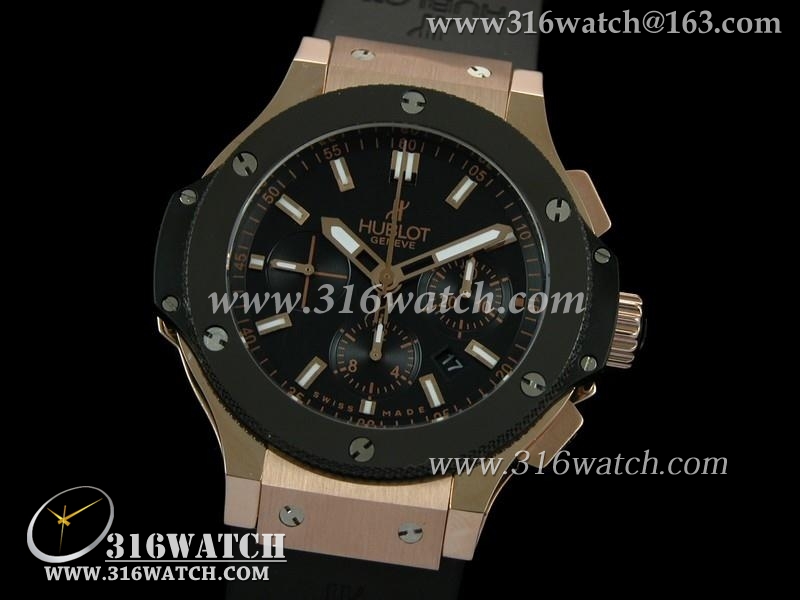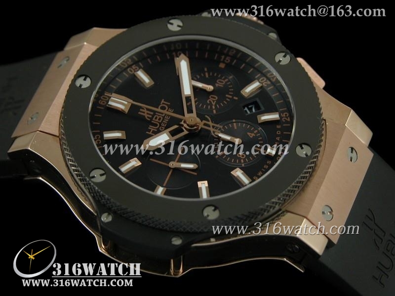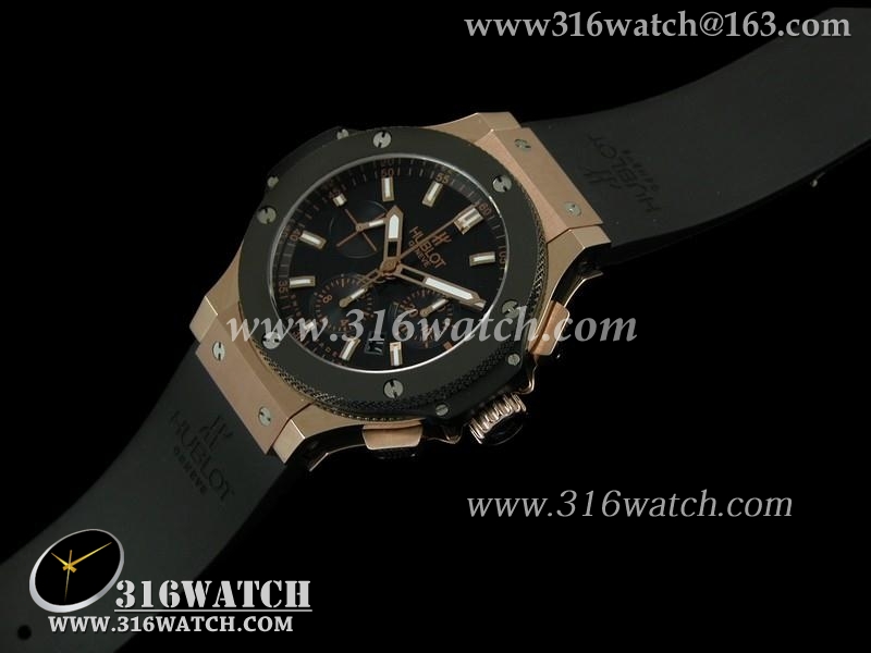 高仿1:1宇舶Hublot-大爆炸44MM系列 18 k玫瑰金电镀表壳 陶瓷边框 黑色橡胶表帶 计时7750机芯 HB0158