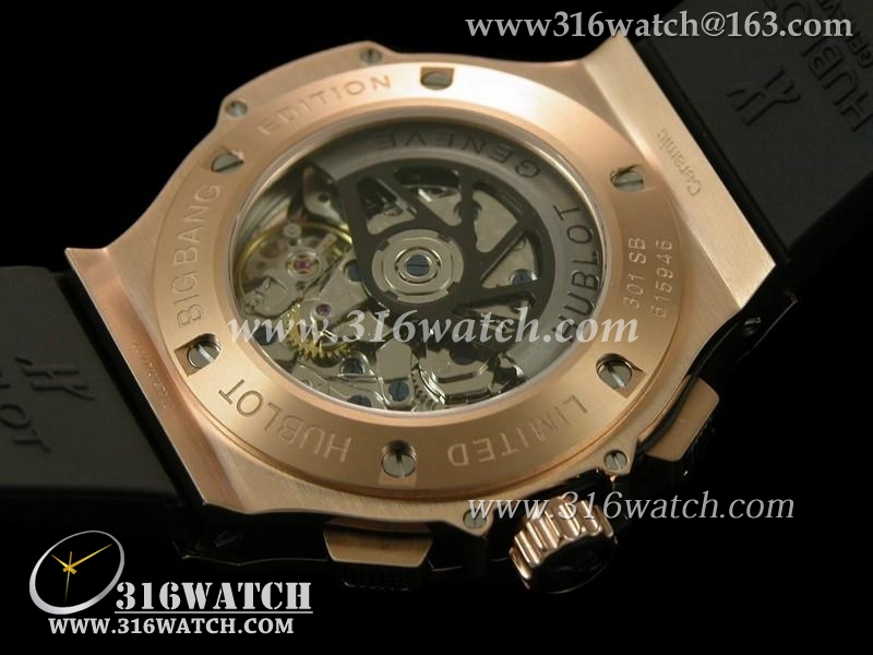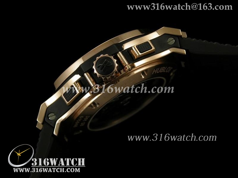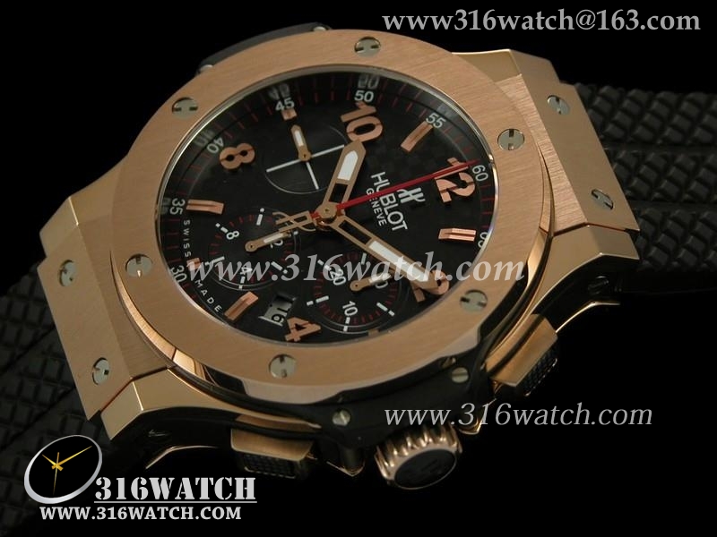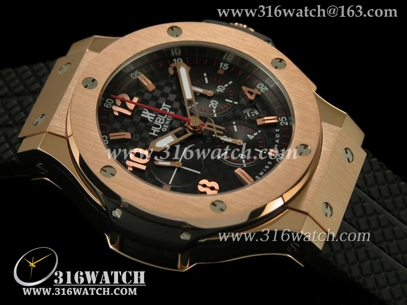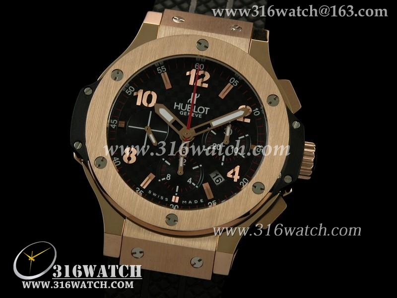 高仿1:1宇舶Hublot-大爆炸44MM系列 18 k玫瑰金电镀 黑色碳纤维表盘 大红秒针 黑色橡胶格仔表帶 计时7750机芯 HB0157