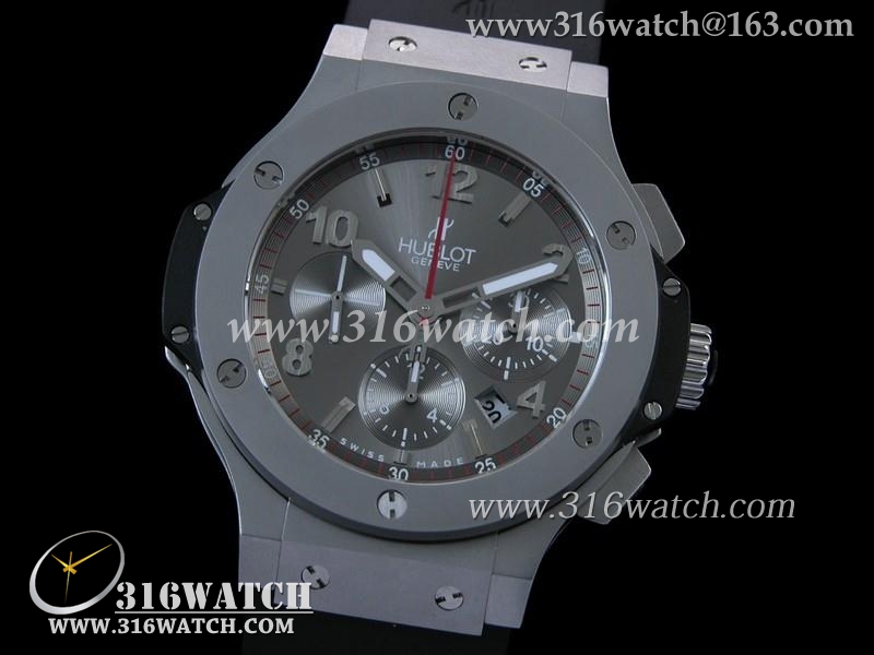 宇舶Hublot-大爆炸系列 灰色表盘 大红秒针 黑色橡胶表帶 亚洲7750计时机芯 高仿1:1宇舶手表 HB0152