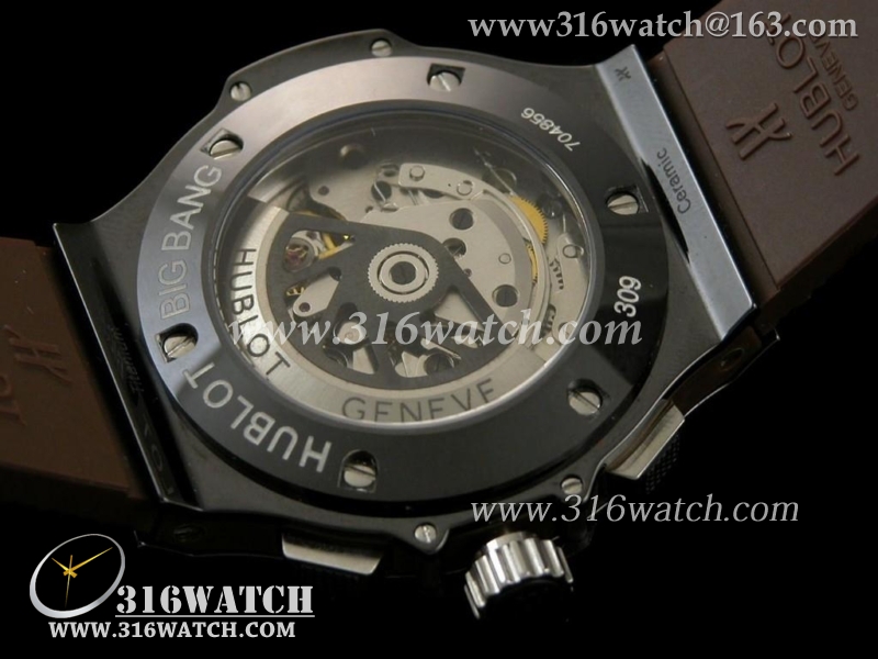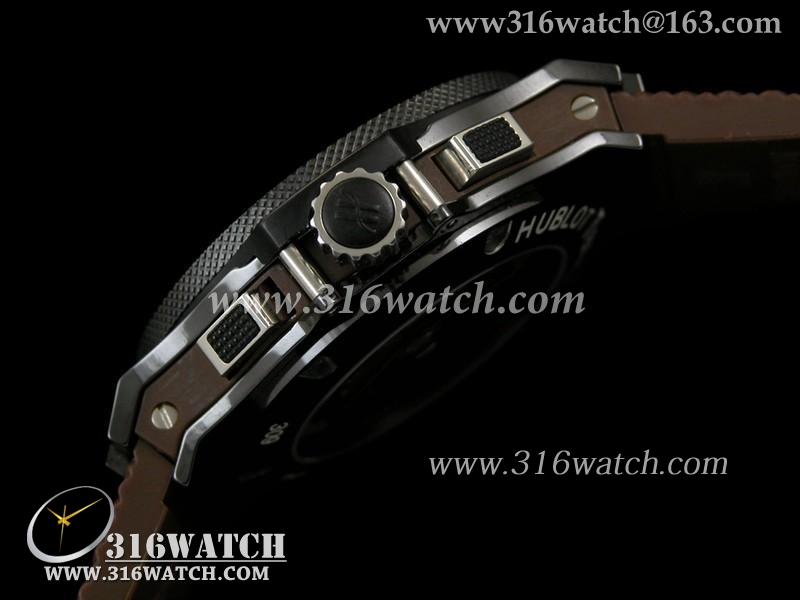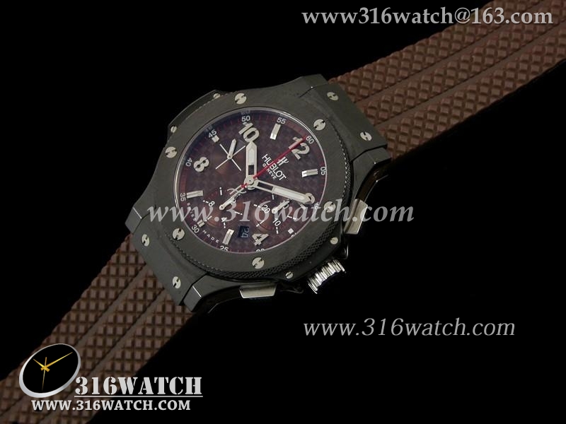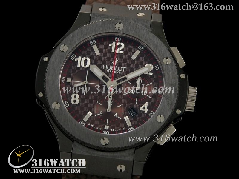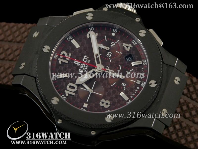 超A宇舶Hublot-大爆炸系列 全陶瓷 咖啡色布朗碳纤维刻度表盘 棕色格仔橡胶表带 亚洲计时7750机芯 高仿1:1宇舶手表 HB0130