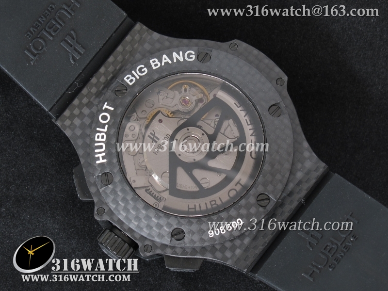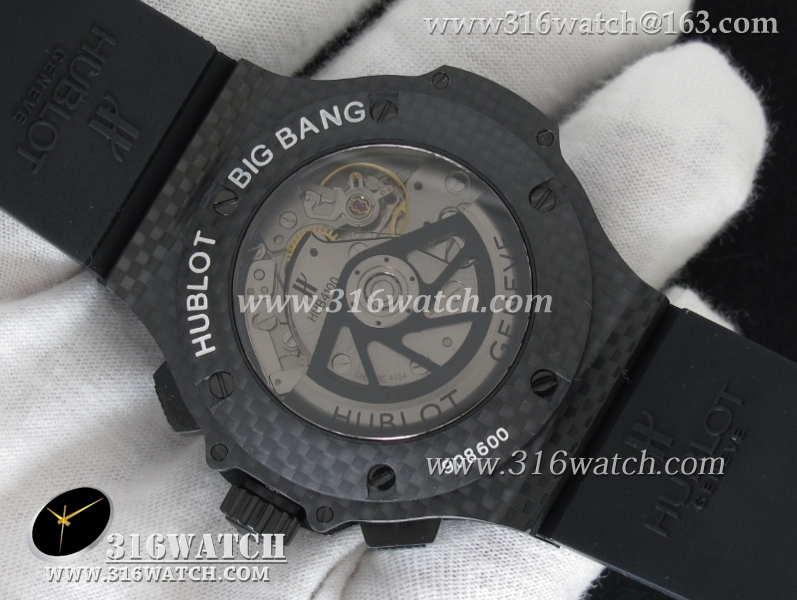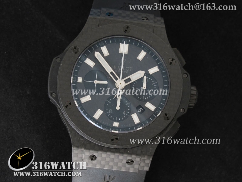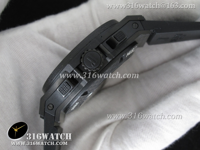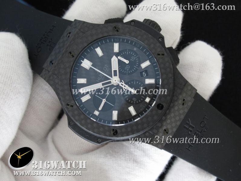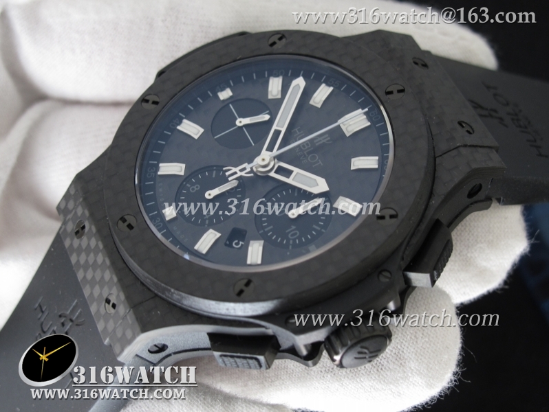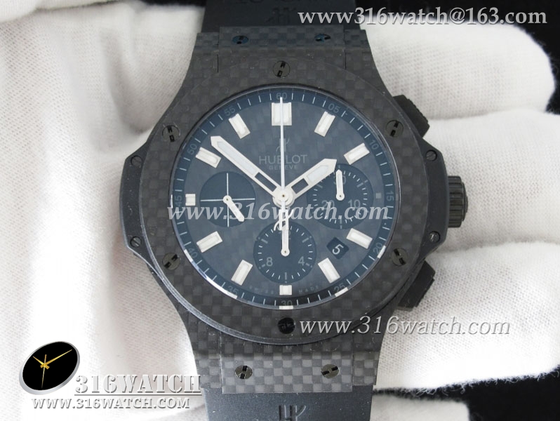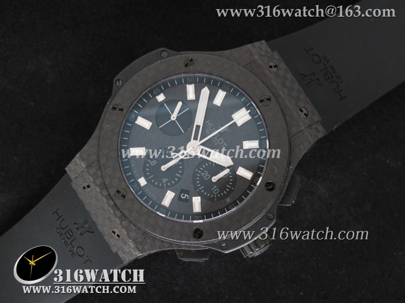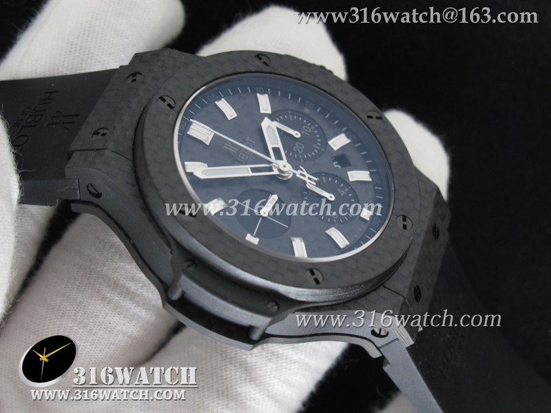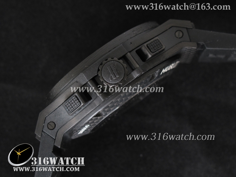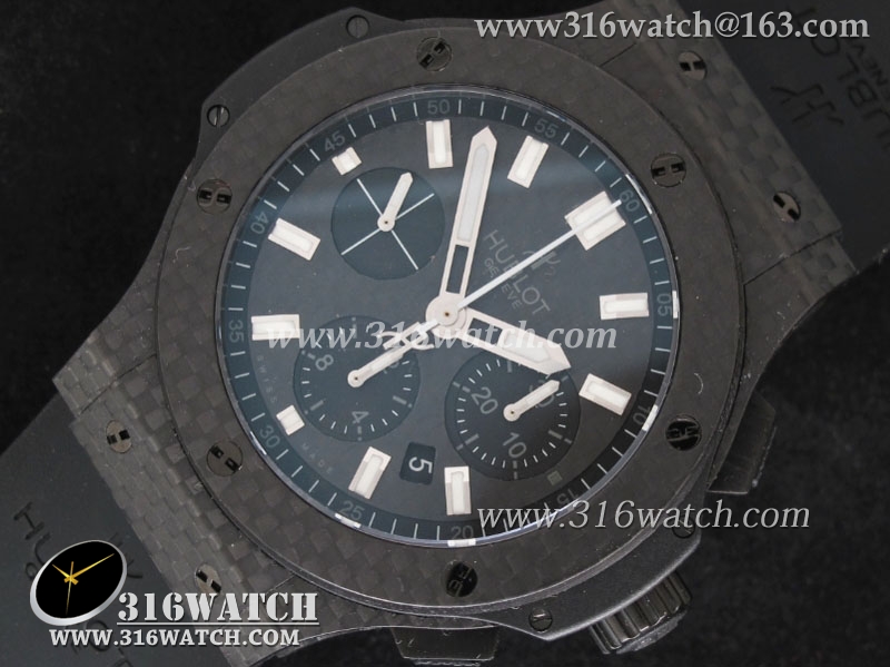 宇舶Hublot-大爆炸V6系列 44mm 黑色碳纤维表壳 黑色纤维表盘 黑色橡胶表带 亚洲7750计时机芯 高仿1:1宇舶手表 HB0187