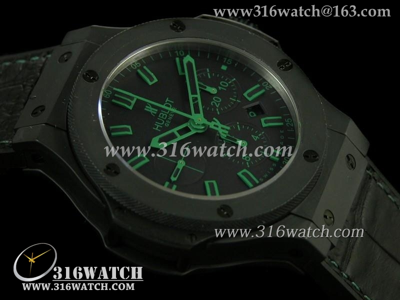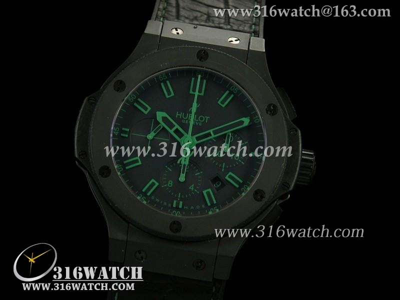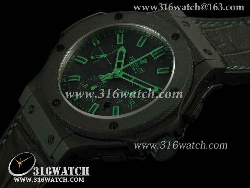 宇舶Hublot-大爆炸V6系列绿魔法全陶瓷 黑色皮表带 亚洲计时7750机芯 复制1:1最佳版本 HB0171