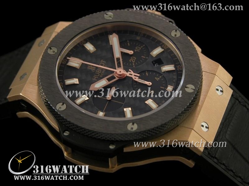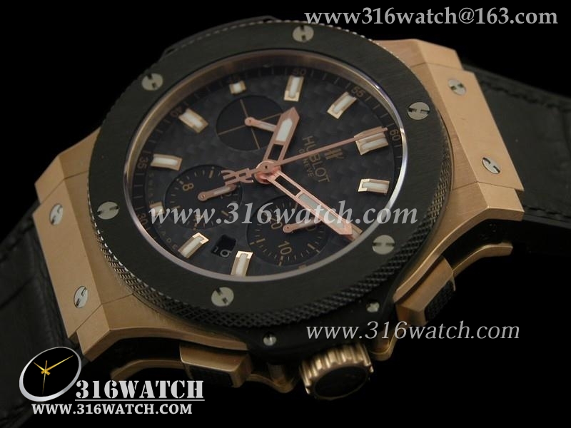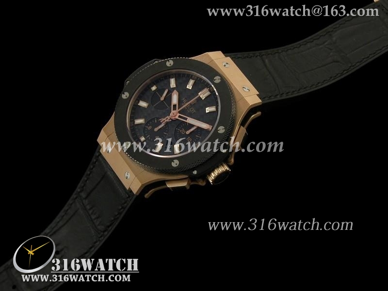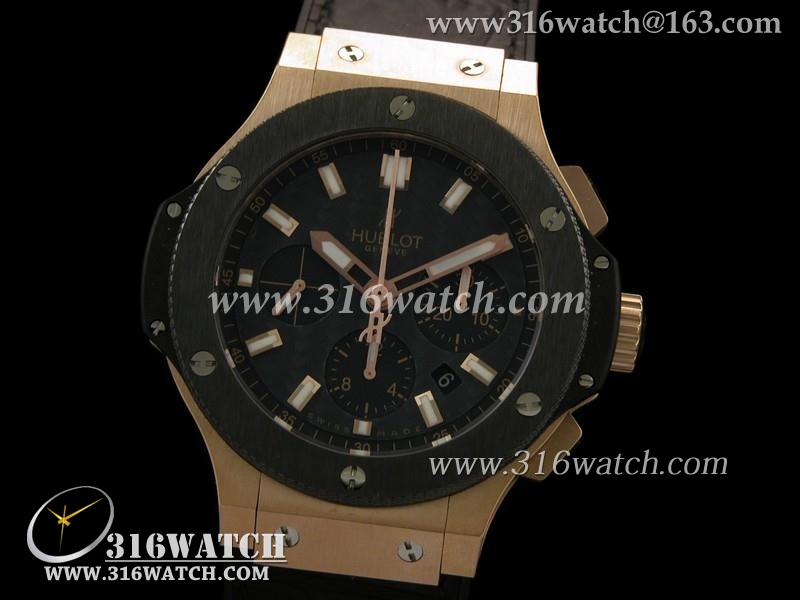 精仿1:1宇舶Hublot-大爆炸V6系列 18k玫瑰金电镀 陶瓷边框 黑色皮表带 亚洲上海7750机芯 HB0105