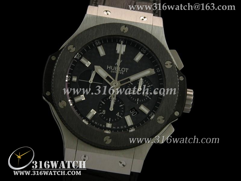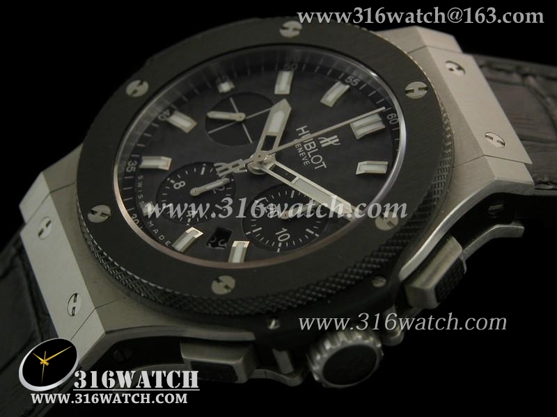 精仿1:1宇舶Hublot-大爆炸V6系列陶瓷边框 黑色表盘 黑色皮表带 亚洲上海7750机芯 HB0102