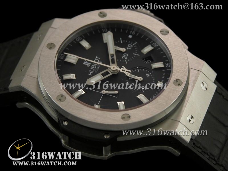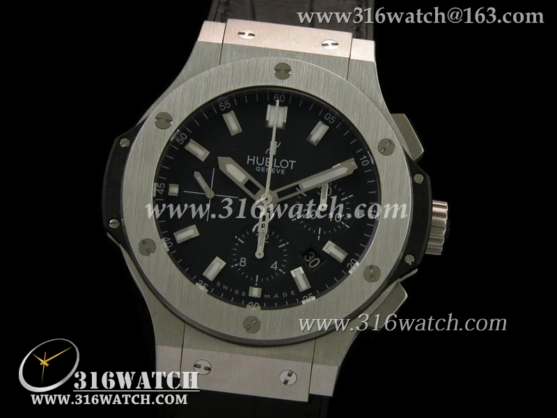 1:1高仿宇舶Hublot-大爆炸V6系列 不锈钢表壳 黑色表盘 黑色皮纹表带 亚洲上海7750机芯 HB0098