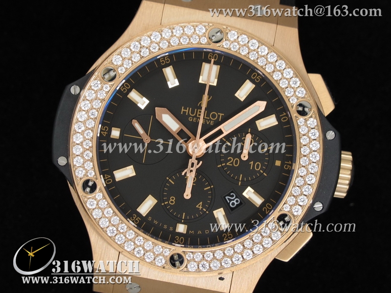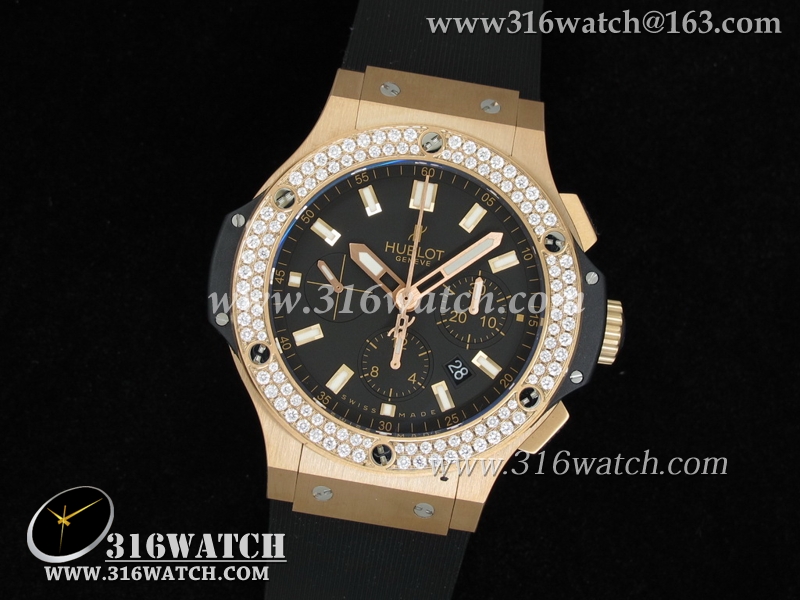 1:1精仿宇舶Hublot-大爆炸V6系列 镶钻边框 18k玫瑰金电镀 黑色表盘 亚洲计时7750机芯 HB0022