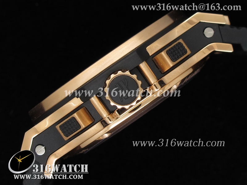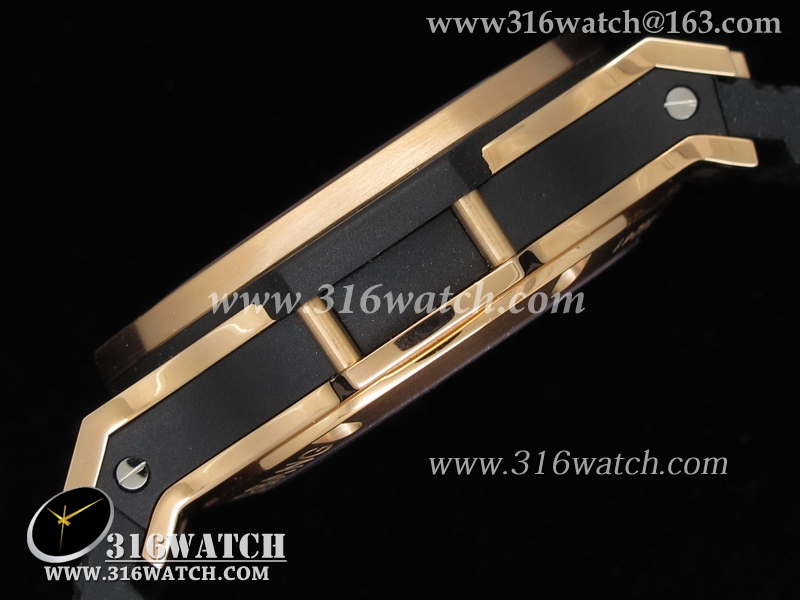 黑色碳纤维表盘,玫瑰金棒/数字标时