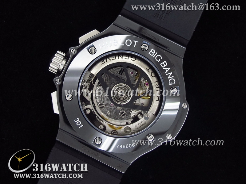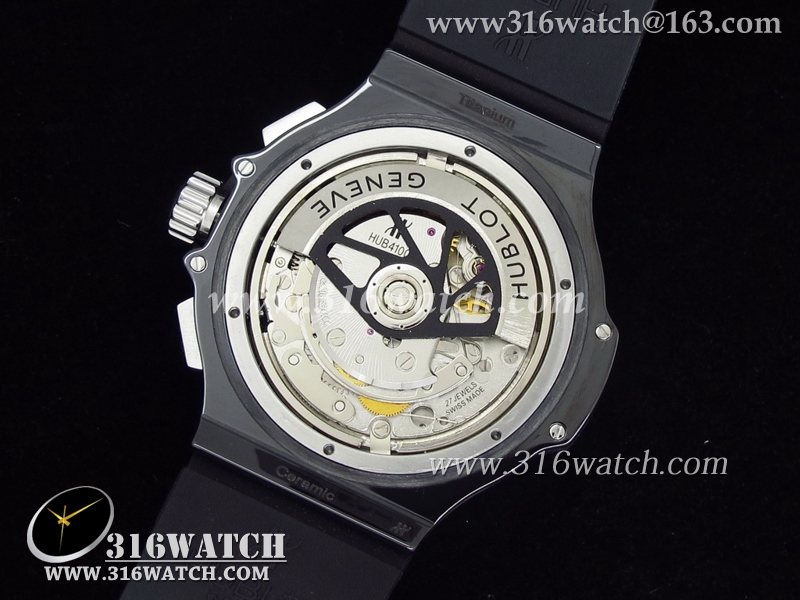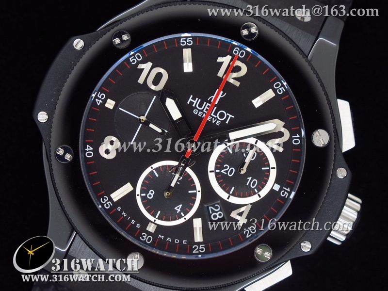 精仿1:1宇舶Hublot-大爆炸 V6系列 全陶瓷大红秒针 黑色数字表盘 黑色格仔橡胶帶 亚洲计时7750机芯 HB0008