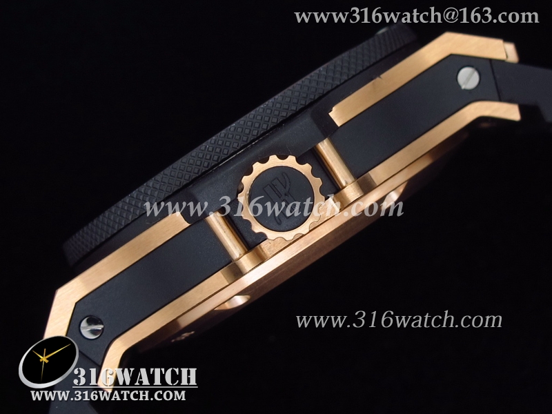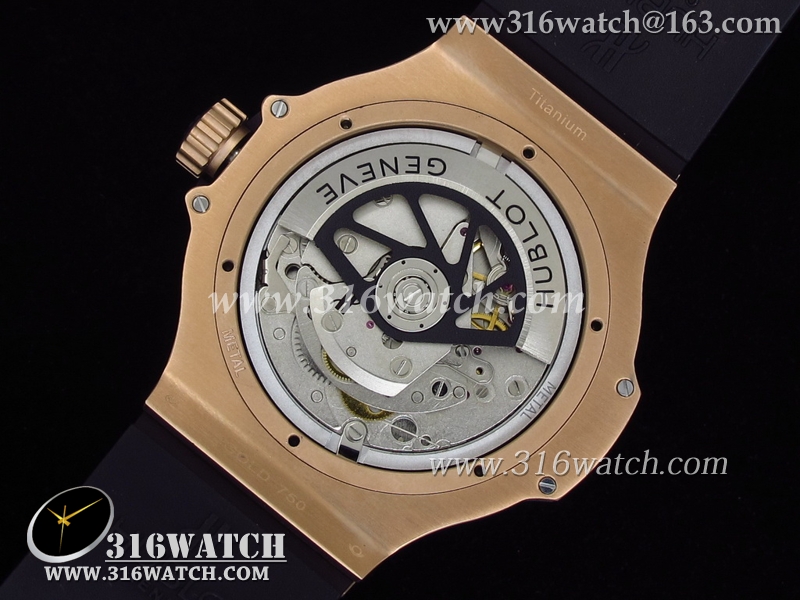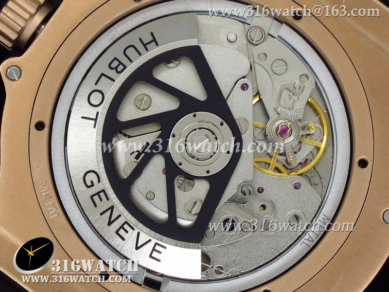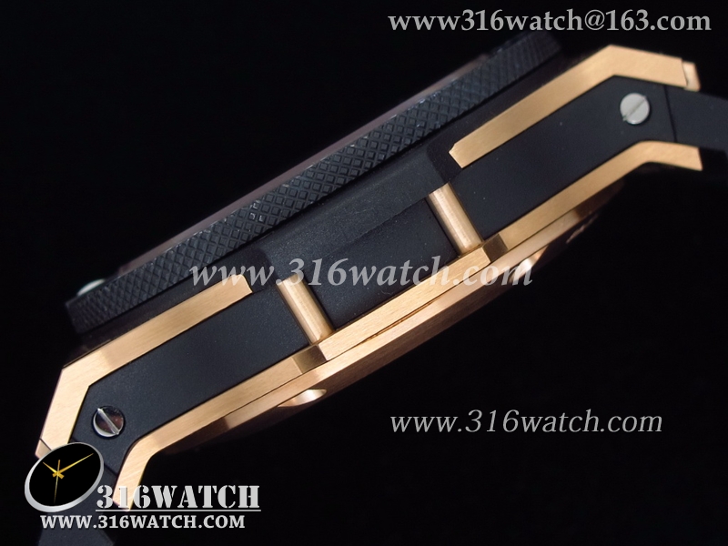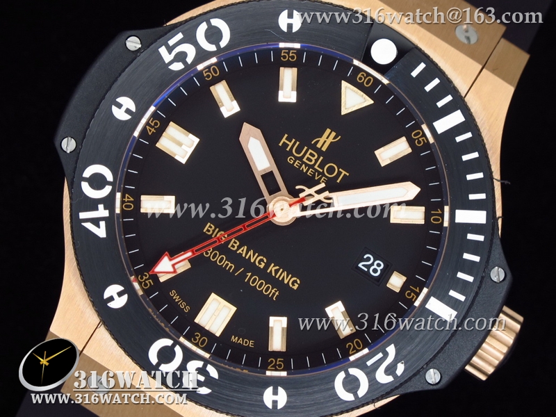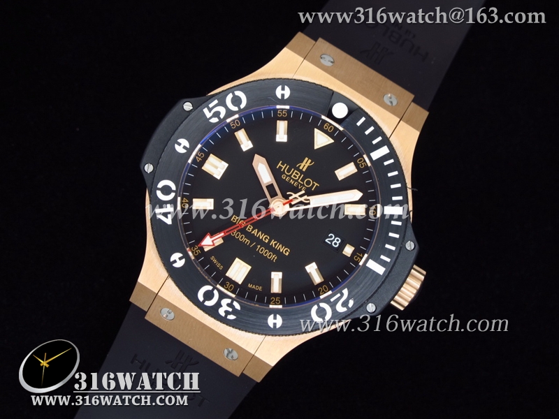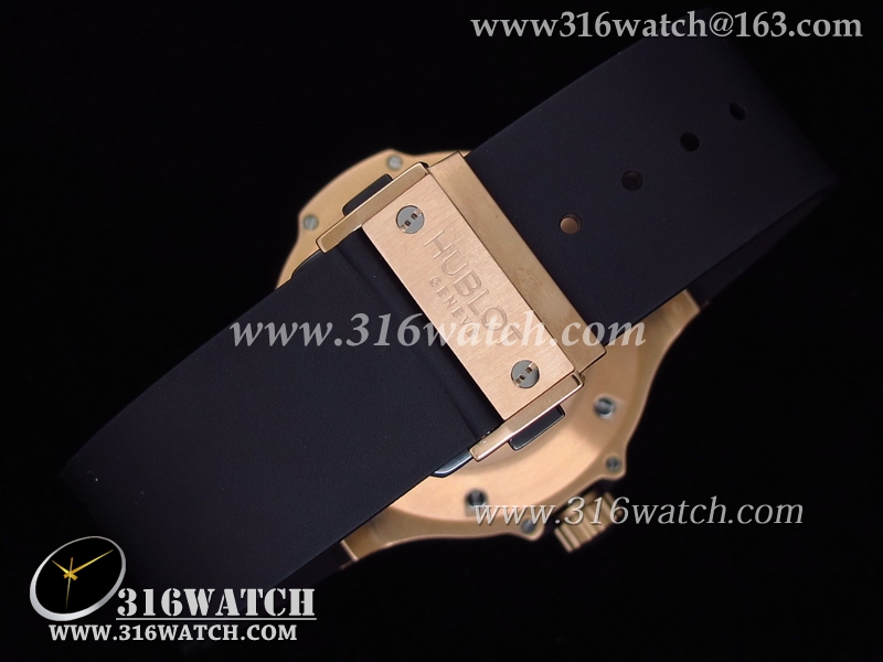 高仿宇舶Hublot-大爆炸King系列 18k玫瑰金镀表壳 黑色表盘 黑色橡胶带 亚洲7750机芯 HB0004