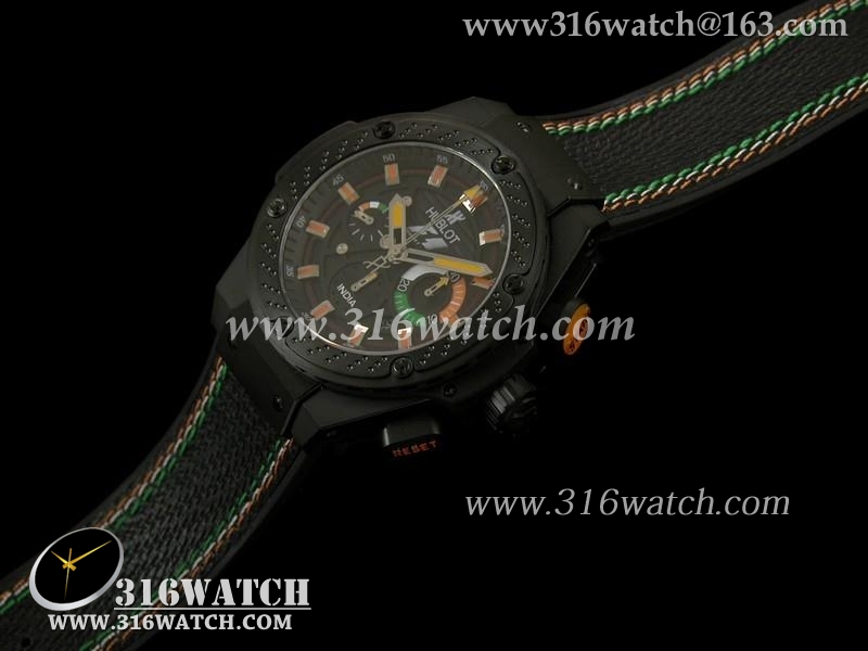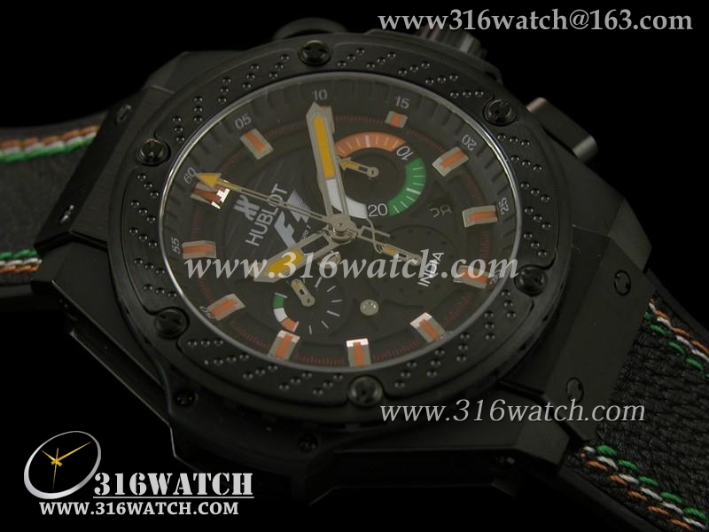 高仿宇舶Hublot-大爆炸国王权力48MM系列 F1印度限量版 黑色PVD表壳 黑色3色线皮带 亚洲7750计时机芯 HB0144