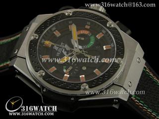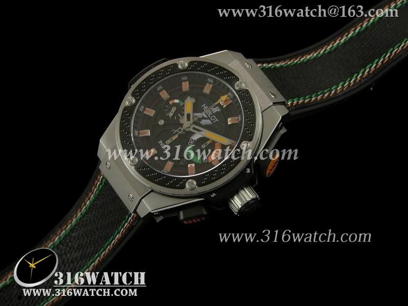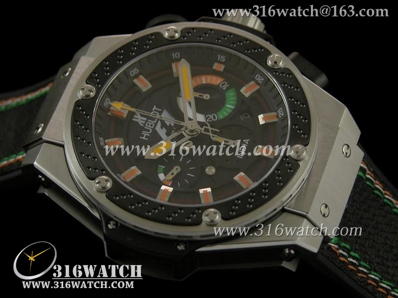 高仿宇舶Hublot-大爆炸国王权力48MM系列 F1印度限量版 黑色的纹理穿孔设计 黑色3色线皮带 亚洲7750计时机芯 HB0142