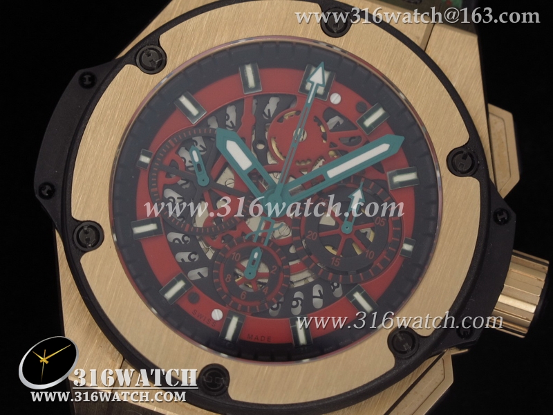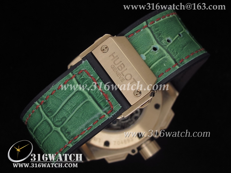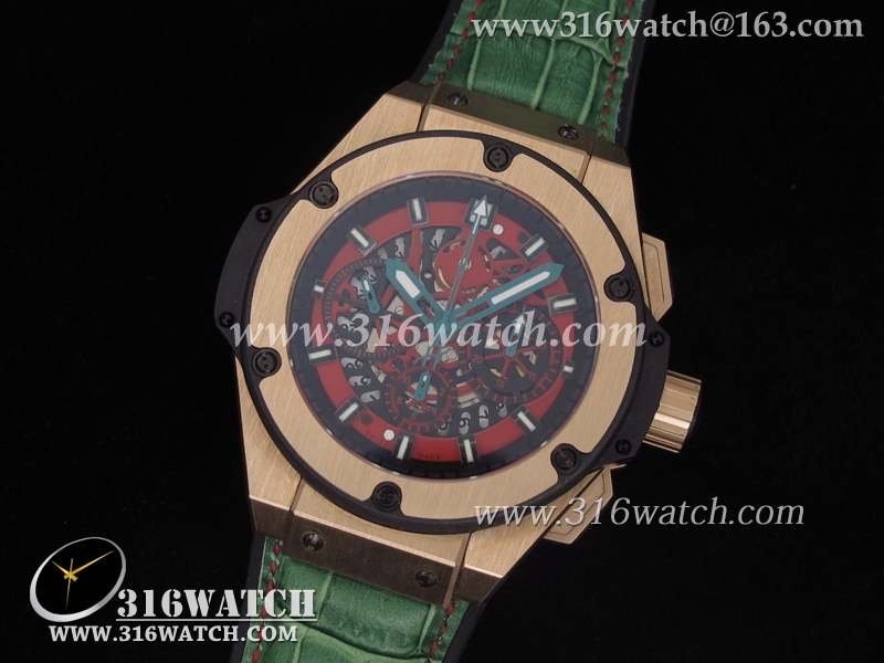 高仿宇舶Hublot-大爆炸King Power 48MM系列18k玫瑰镀金表壳 红色表盘 绿色皮表带 亚洲计时7750机芯 HB0019