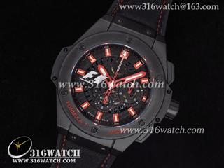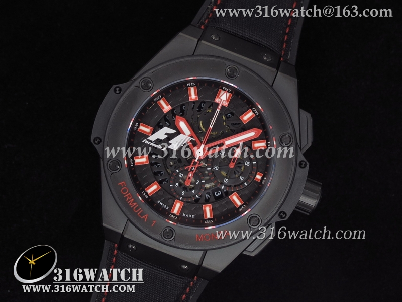 高仿宇舶Hublot-大爆炸King Power 48MM系列F1 PVD表壳 黑色表盘 黑色尼龙表带 亚洲计时7750机芯 B0013