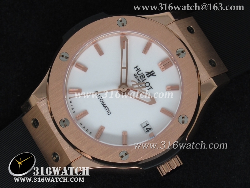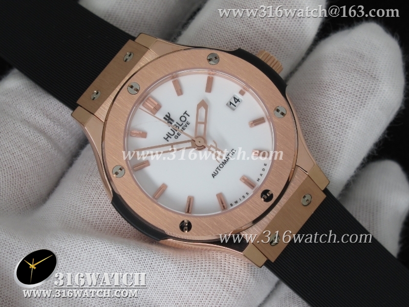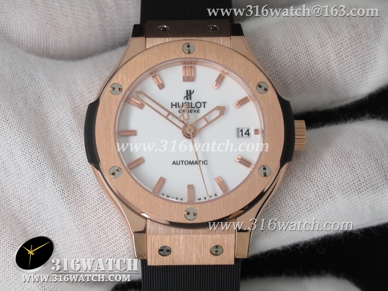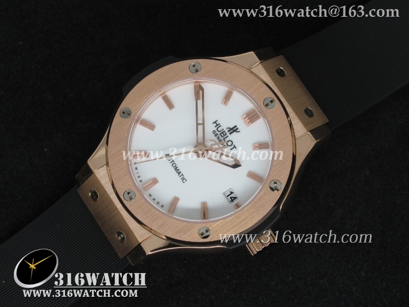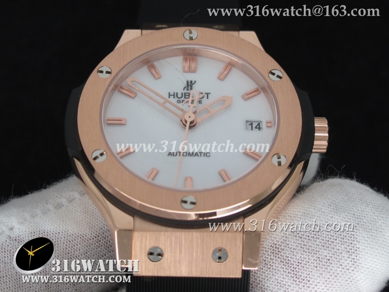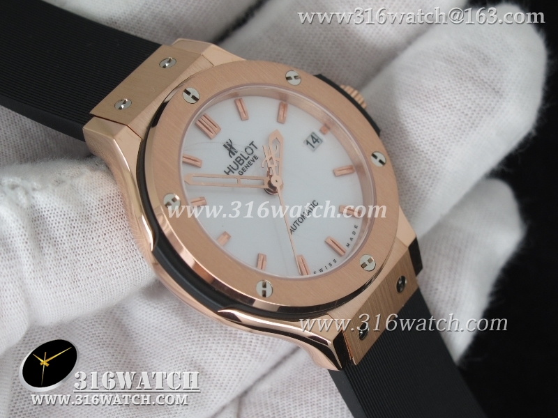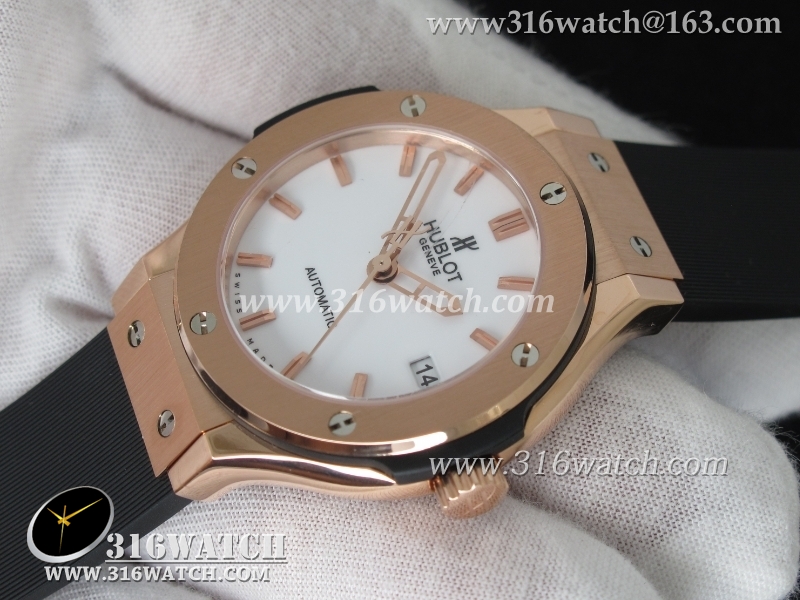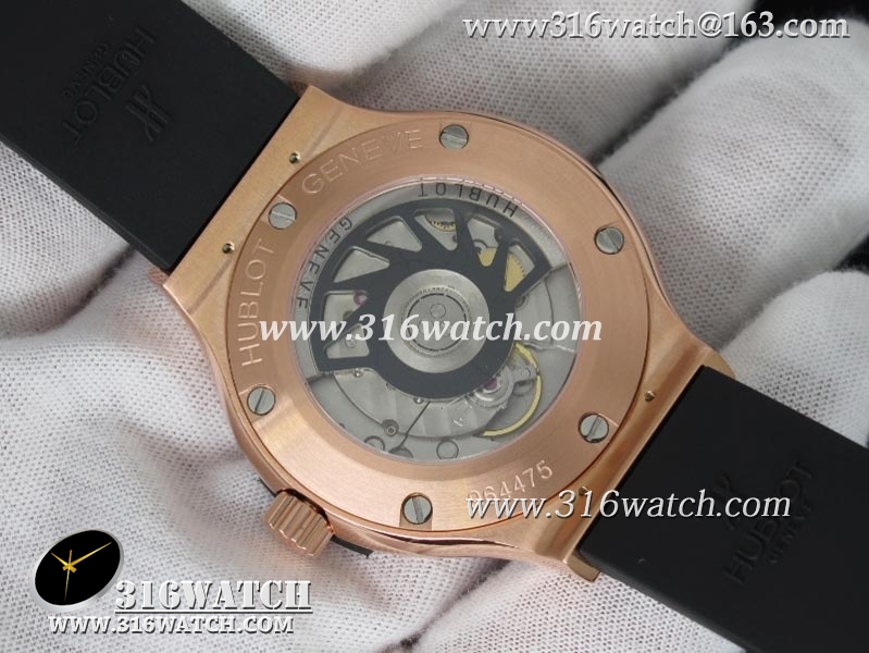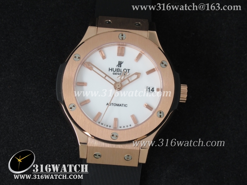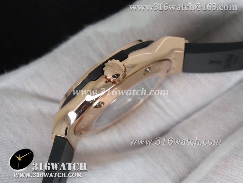 1:1高仿宇舶Hublot-大爆炸经典融合38mm系列 1:1 18K玫瑰电镀金表壳 黑色表盘 黑色橡胶表带 自动MIYOTA9015机芯 HB0190