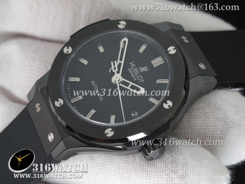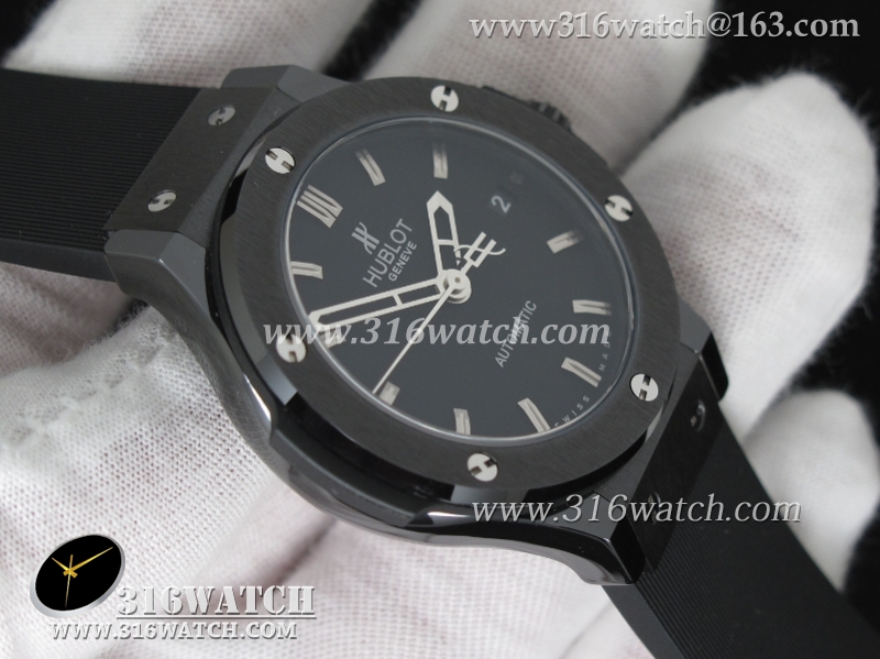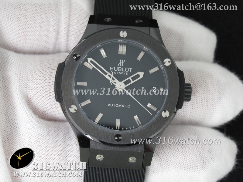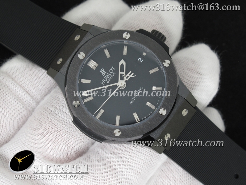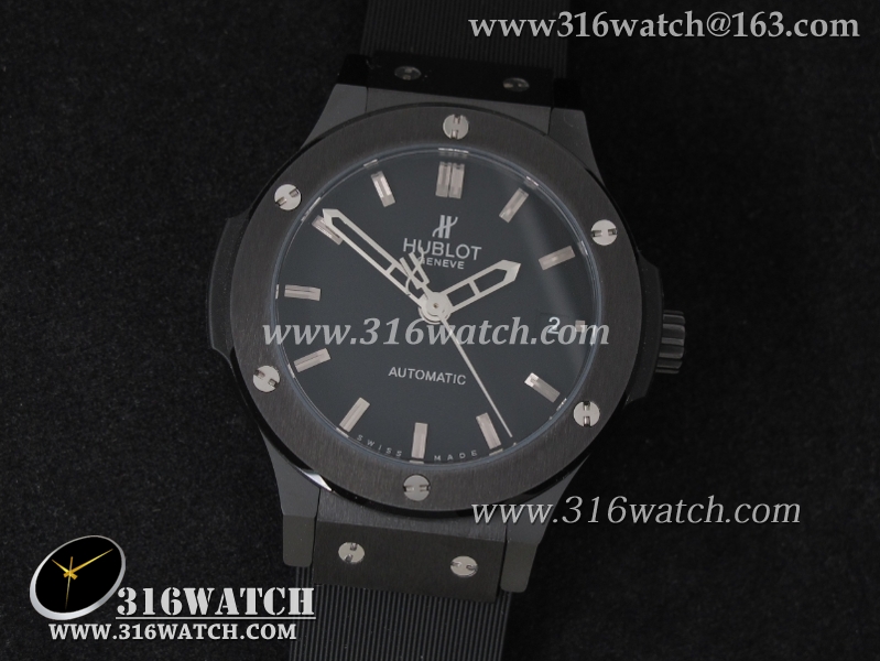 1:1高仿宇舶Hublot-大爆炸经典融合38mm系列 1:1 黑色真陶瓷表壳 黑色表盘 黑色橡胶表带 自动MIYOTA9015机芯 HB0189