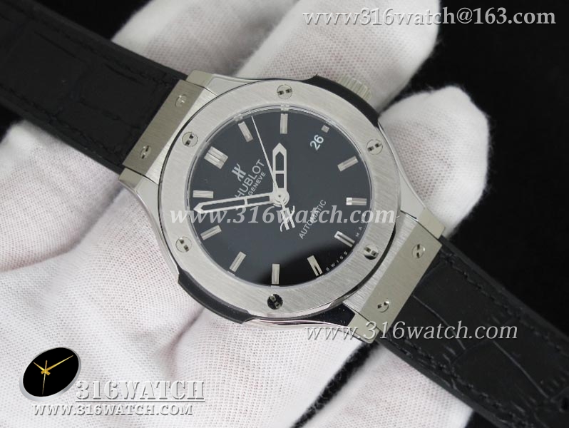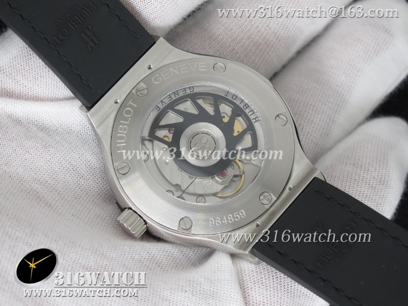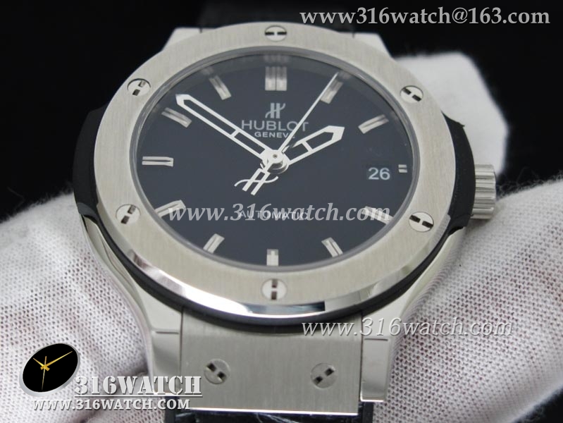 1:1高仿宇舶Hublot-大爆炸经典融合38mm系列 1:1 不锈钢表壳 黑色表盘 黑色皮纹橡胶表带 自动MIYOTA9015机芯 HB0188