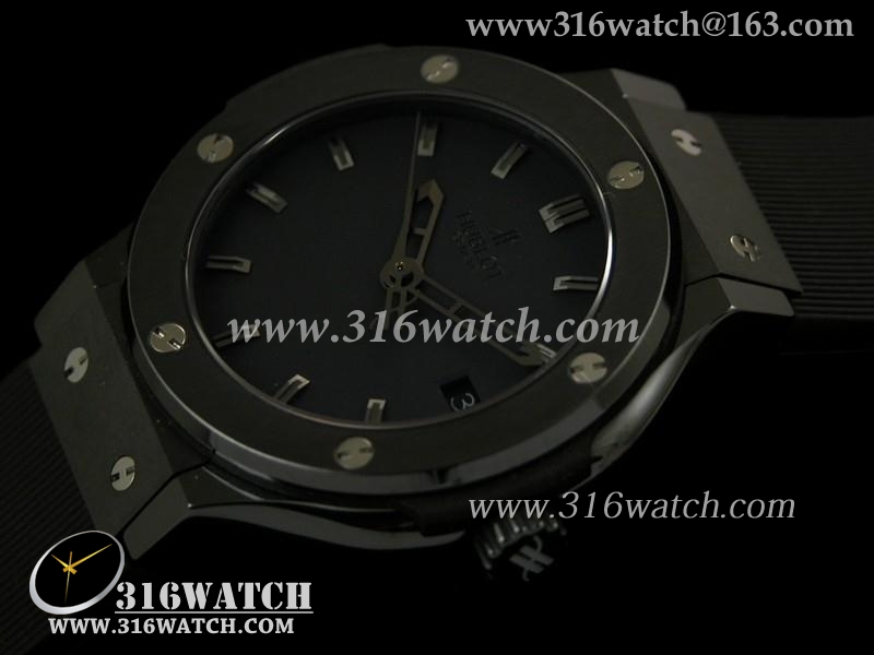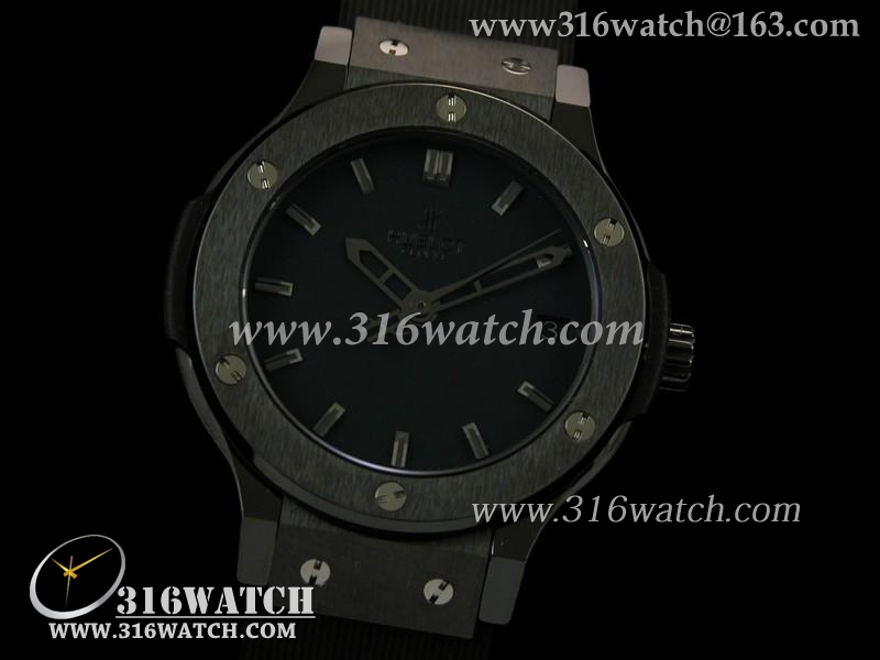 高仿宇舶Hublot-大爆炸经典融合38mm系列 黑色PVD表壳 黑色表盘 黑色橡胶表带 瑞士ETA2824机芯 HB0150