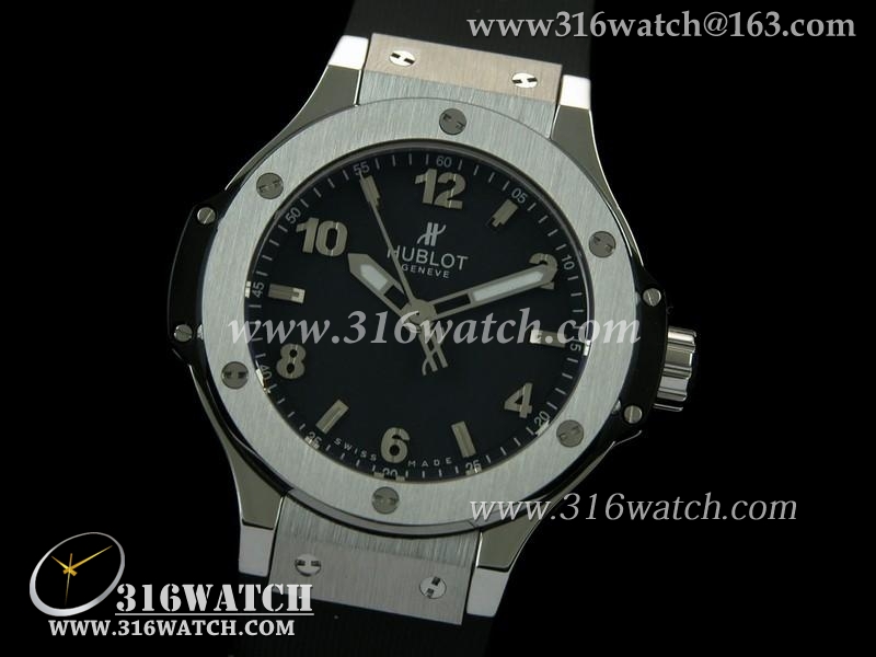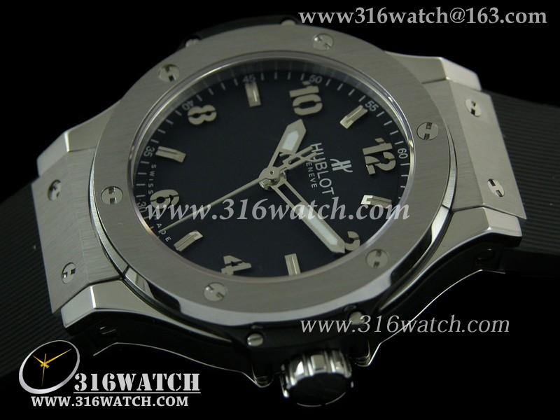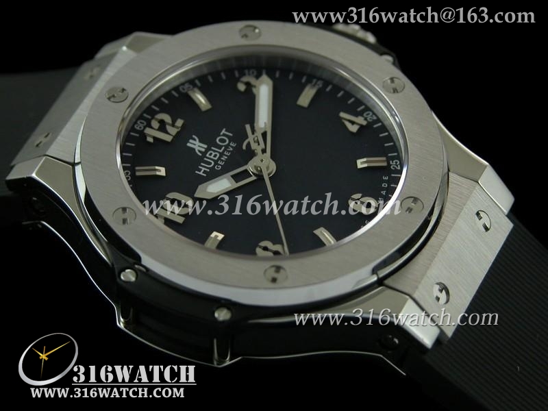 精仿宇舶Hublot-大爆炸经典融合38mm系列 黑色表盘 黑色橡胶表带 女士瑞士石英手表 HB0146