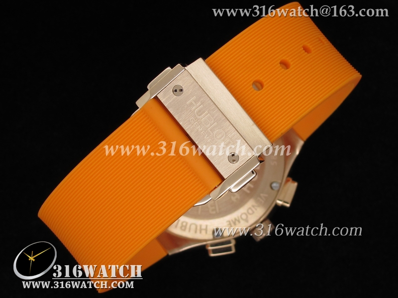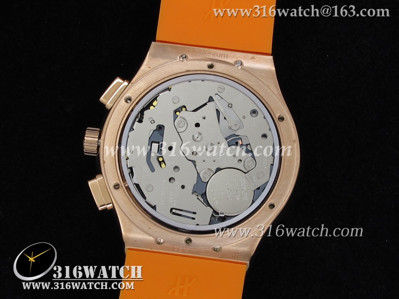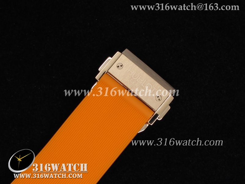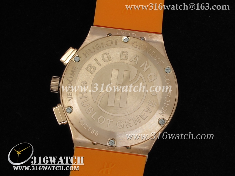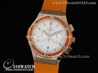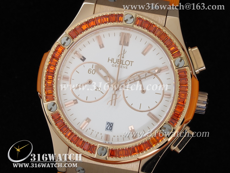 高仿宇舶Hublot-大爆炸经典融合38mm系列 18k玫瑰金电镀表壳 镶钻边框 白面橙色橡胶带 女士计时石英表 HB0050