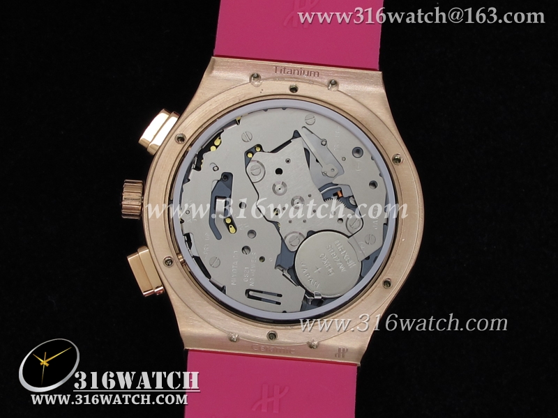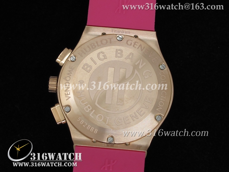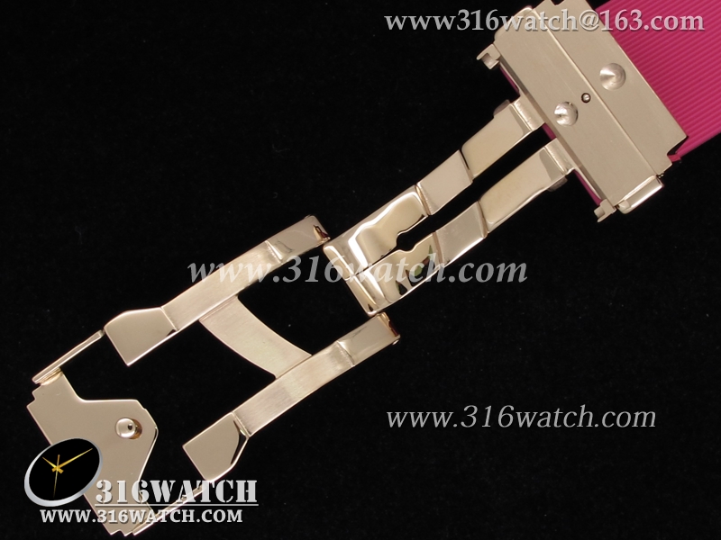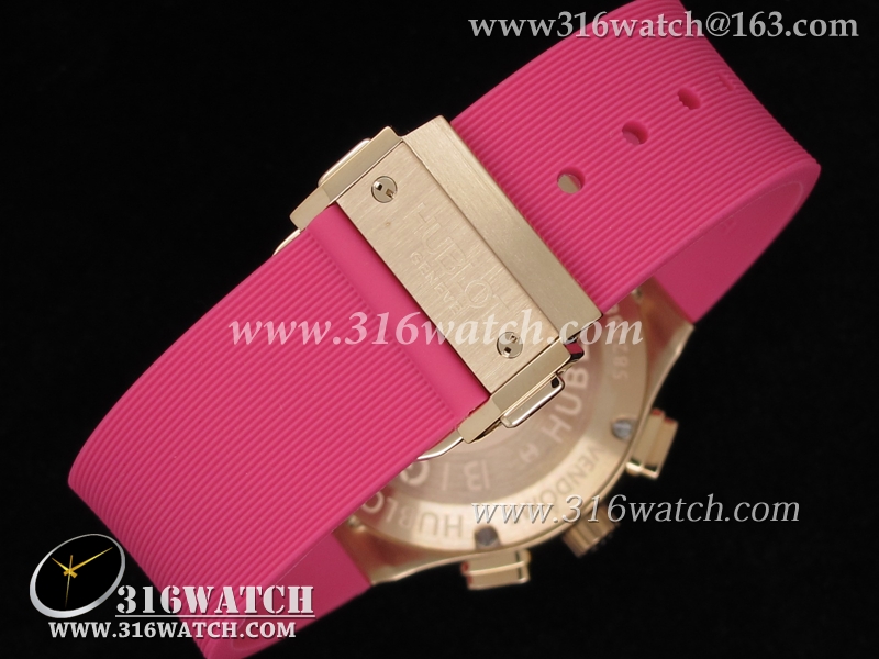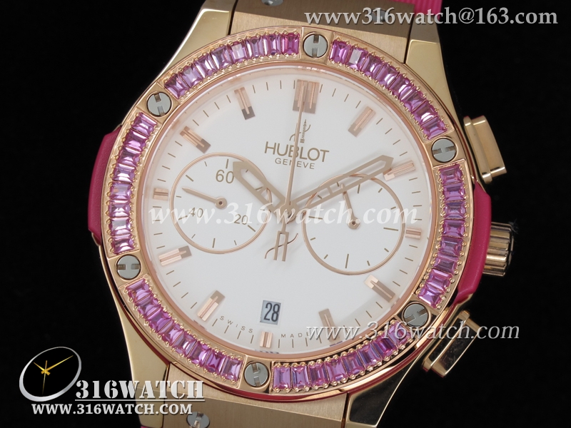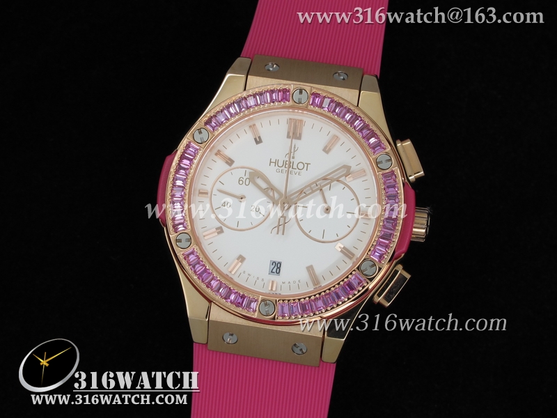 高仿宇舶Hublot-大爆炸经典融合38mm系列 18k玫瑰金电镀表壳 镶钻边框 白面红色橡胶带 女士计时石英表 HB0047