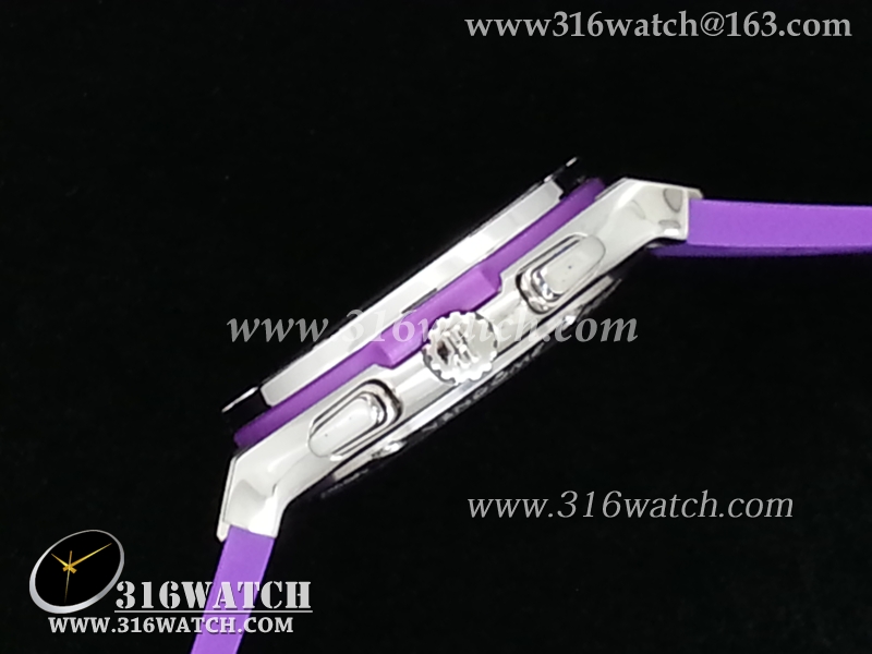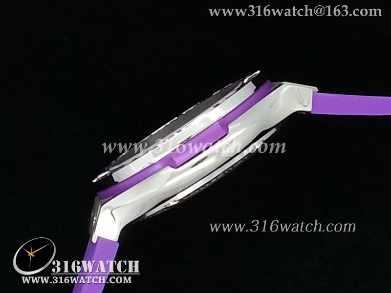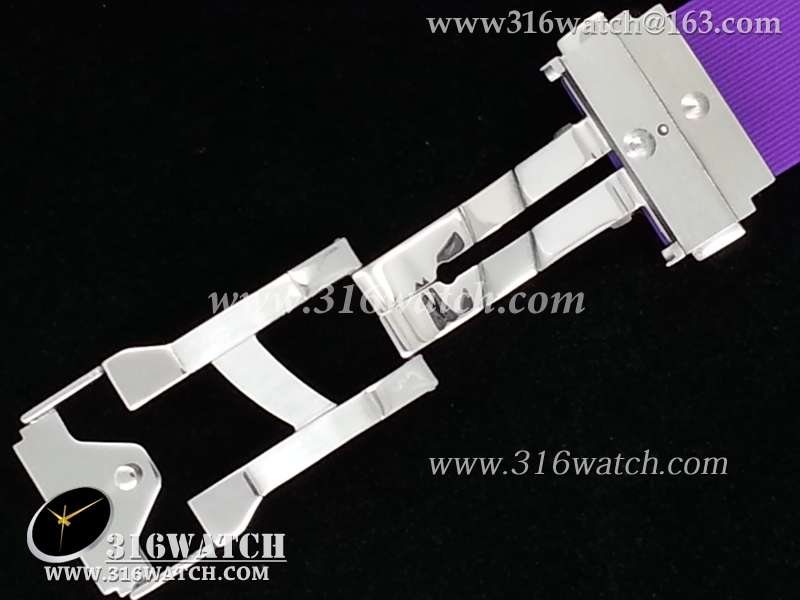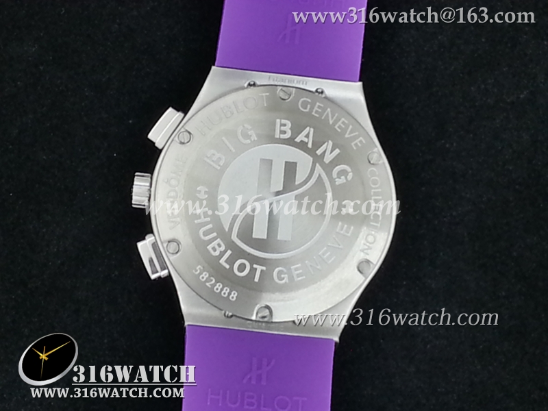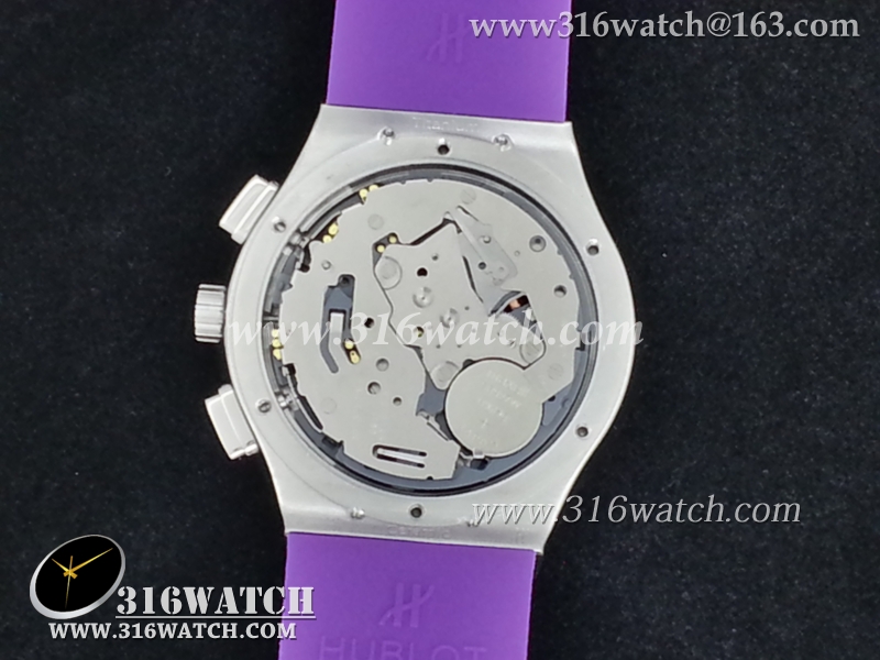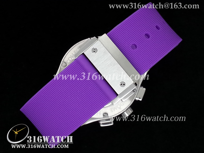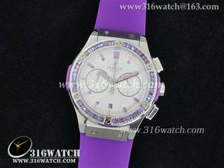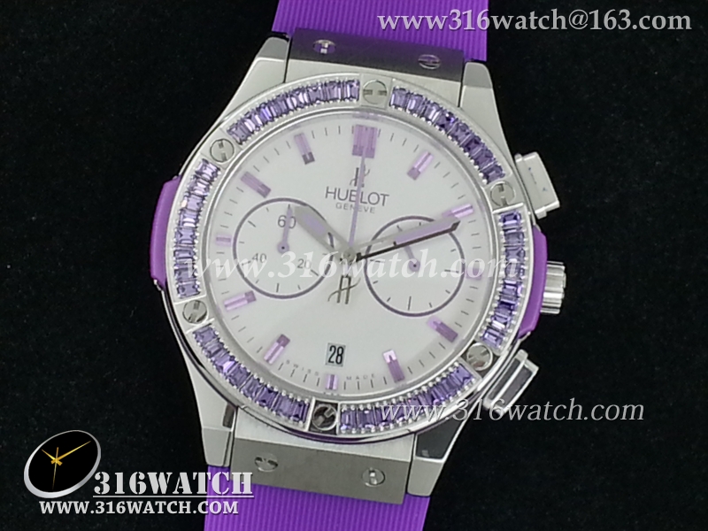 高仿宇舶Hublot-大爆炸经典融合38mm系列 镶钻边框 白色表盘 紫色橡胶带 女士计时石英表 HB0036