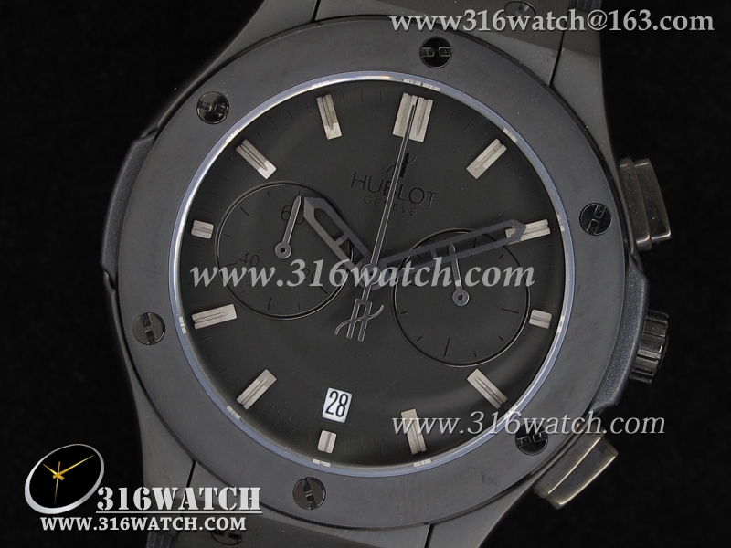 高仿宇舶Hublot-大爆炸经典融合40MM系列 黑色PVD表壳 黑色表盘 黑色橡胶带 男士石英表 HB0026