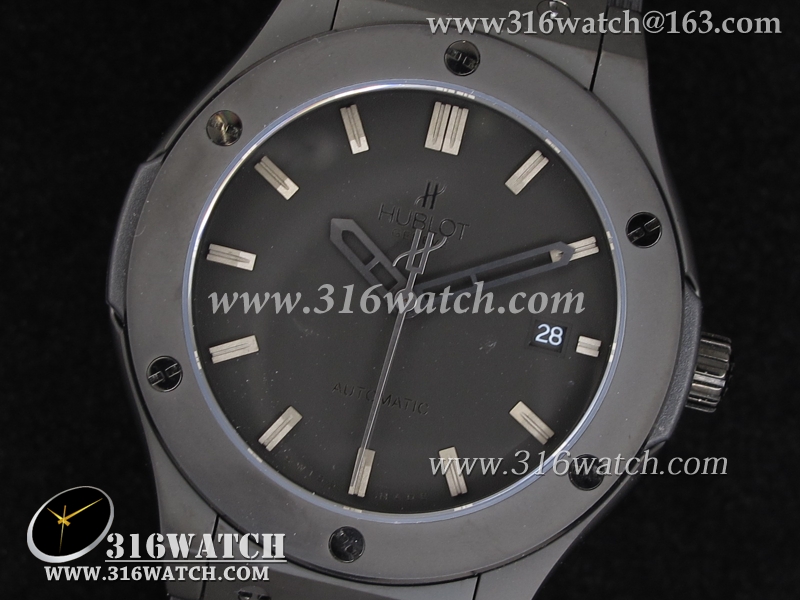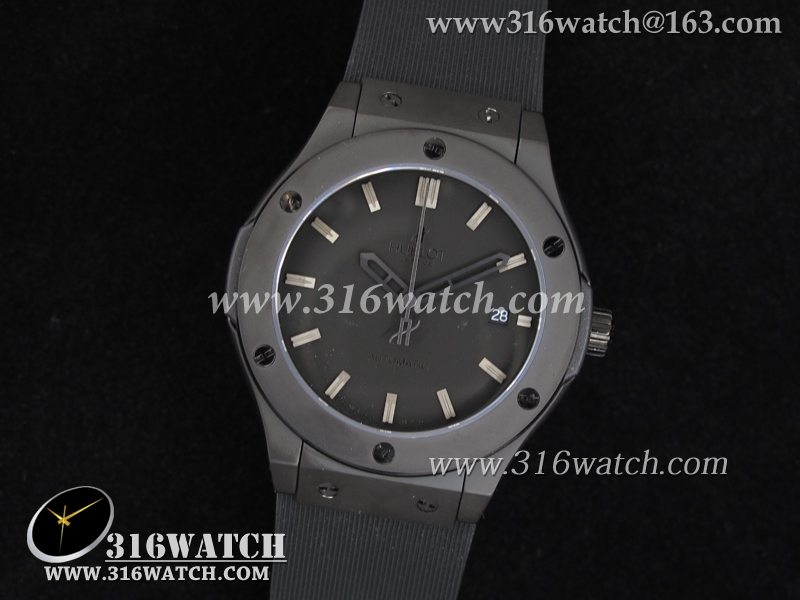 高仿宇舶Hublot-大爆炸经典融合40MM系列 黑色PVD表壳 黑色表盘 黑色橡胶带 男士机械表 HB0024