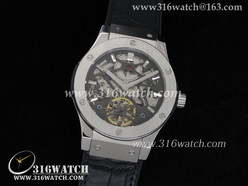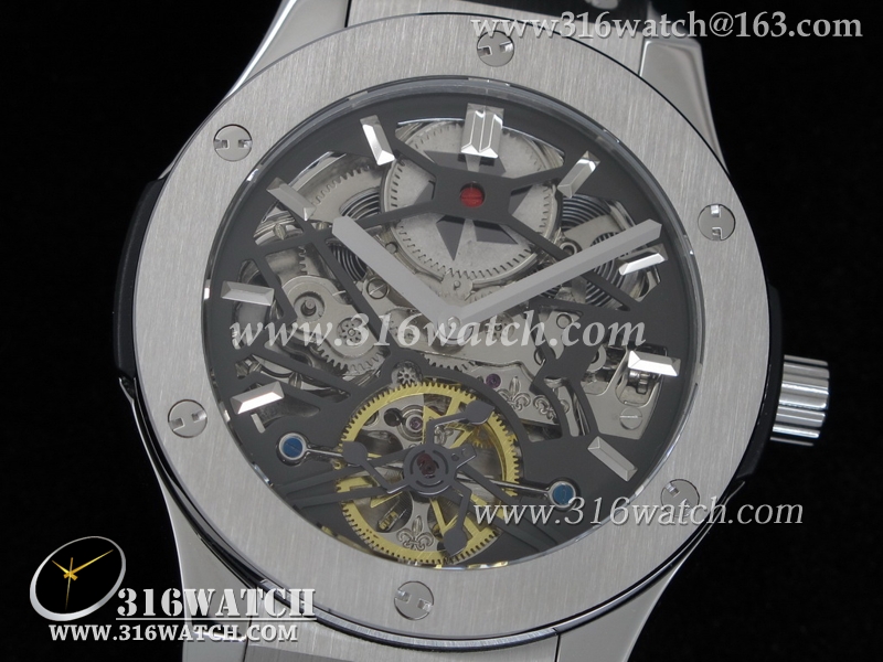 高仿宇舶Hublot-大爆炸经典融合44mm系列 骨架飞轮表盘 黑色皮带 男士自动机械表 HB0089