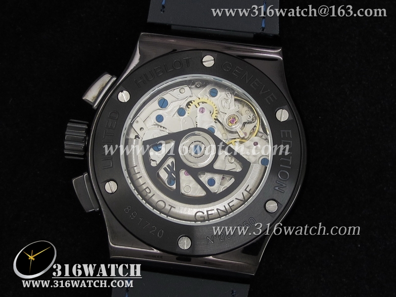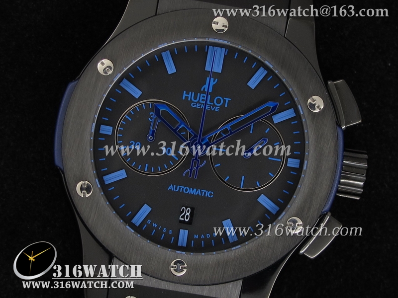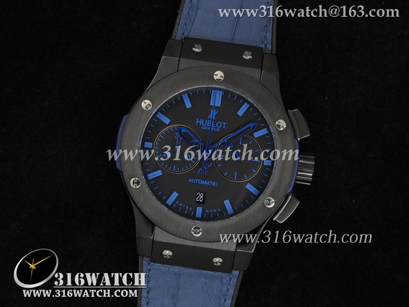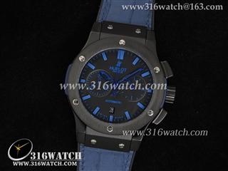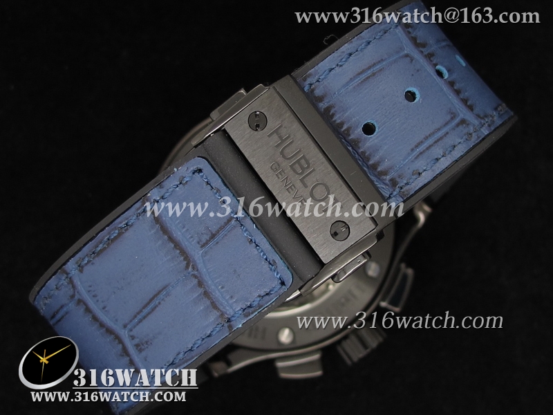 高仿宇舶Hublot-大爆炸经典融合44mm系列 V2 黑色PVD 蓝色皮表带 男士7750计时自动机械表 HB0064