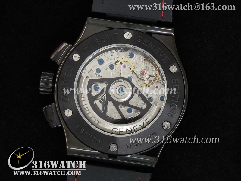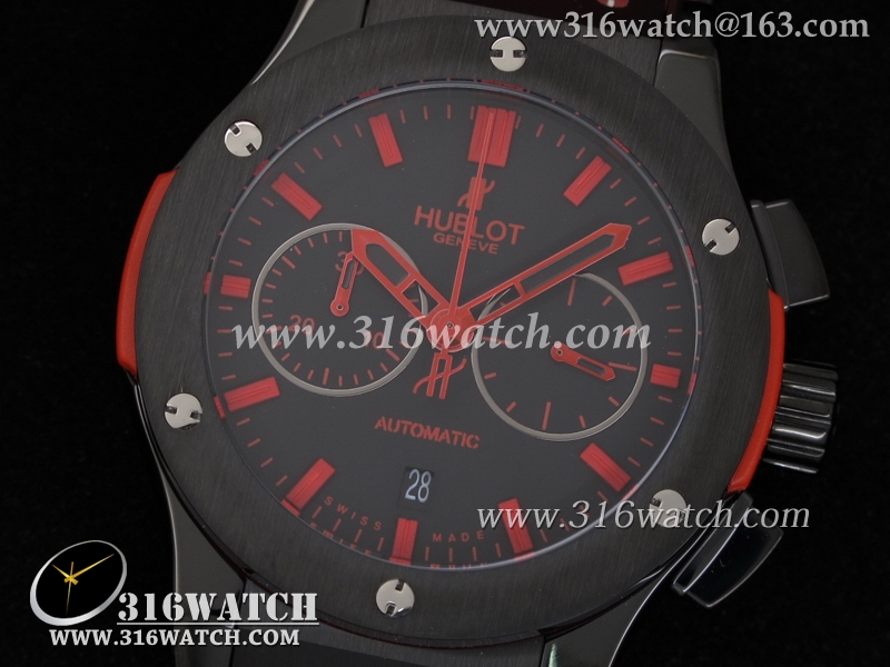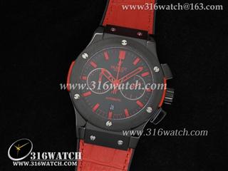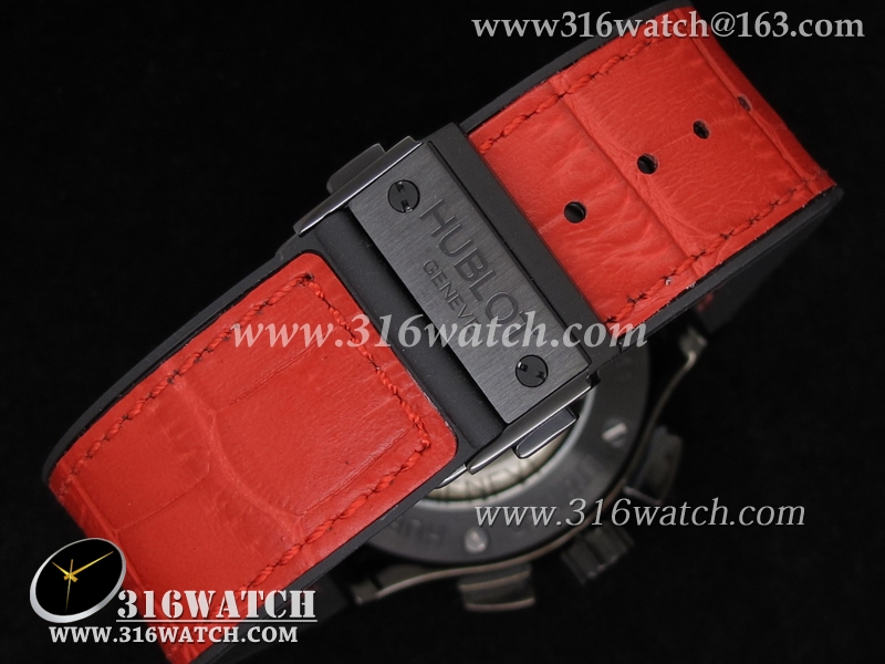 高仿宇舶Hublot-大爆炸经典融合44mm系列 V2 黑色PVD 红色皮表带 男士7750计时自动机械表 HB0063