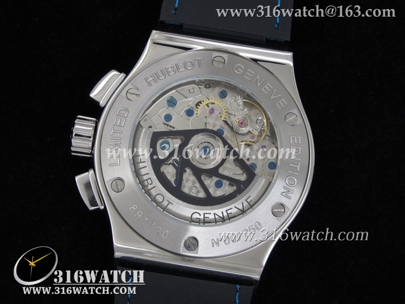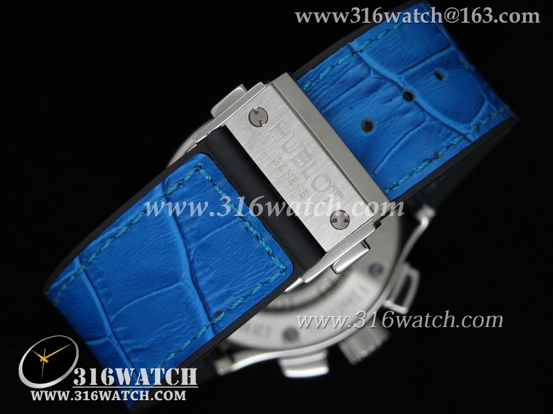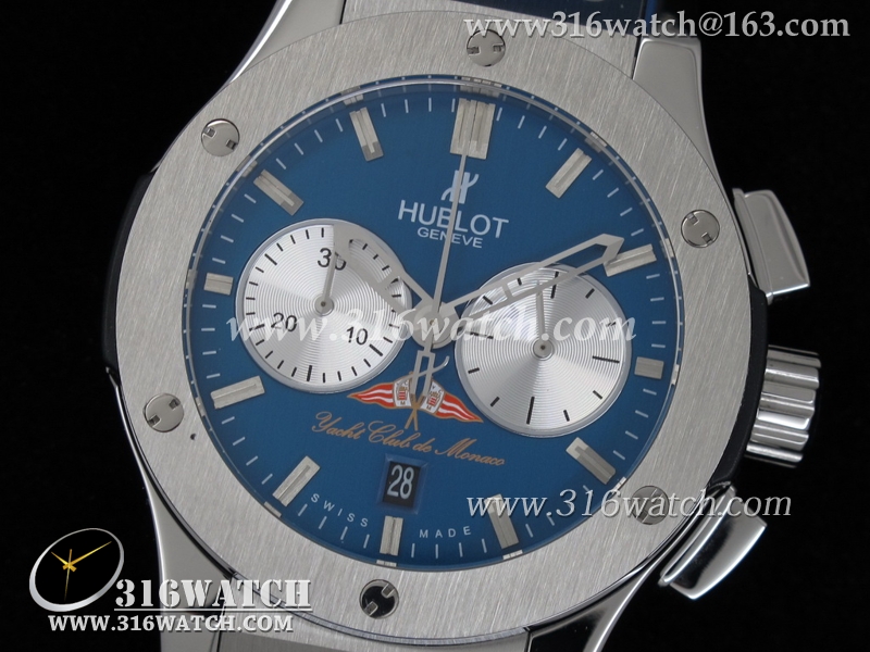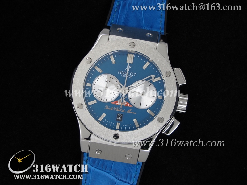 高仿宇舶Hublot-大爆炸经典融合44mm系列 摩纳哥游艇俱乐部 蓝色表盘 蓝色皮表带 男士7750计时自动机械表 HB0061