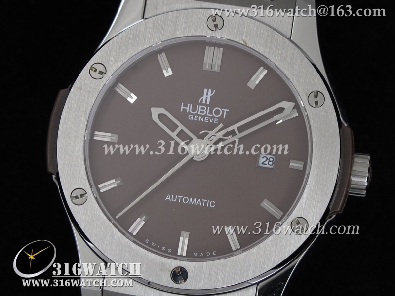 高仿宇舶Hublot-大爆炸经典融合44mm系列 咖啡色表盘 精钢表链 男士自动机械表 HB0058