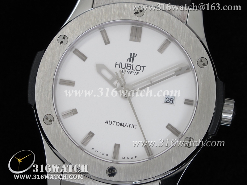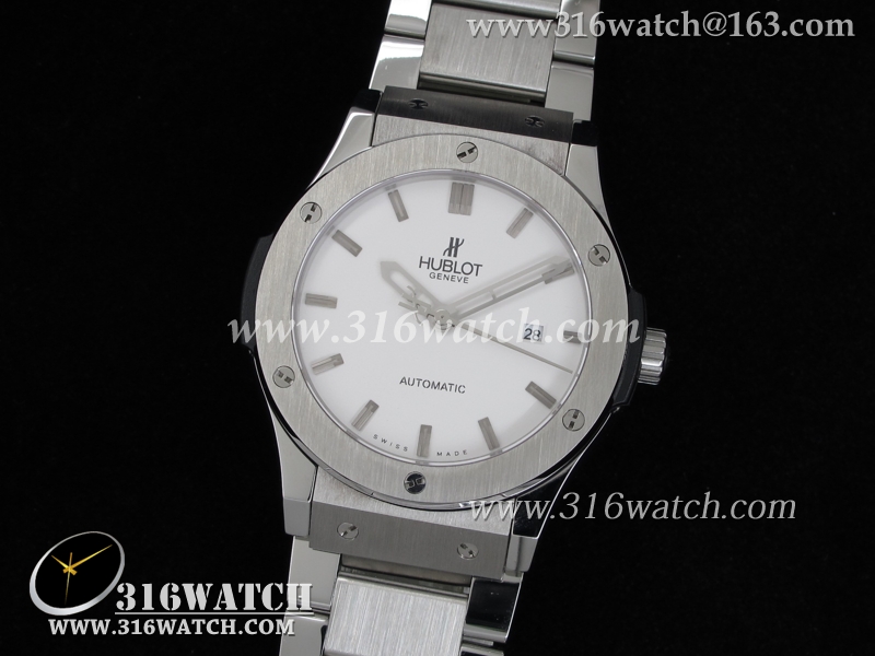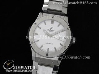 高仿宇舶Hublot-大爆炸经典融合44mm系列 白色表盘 精钢表链 男士自动机械表 HB0055