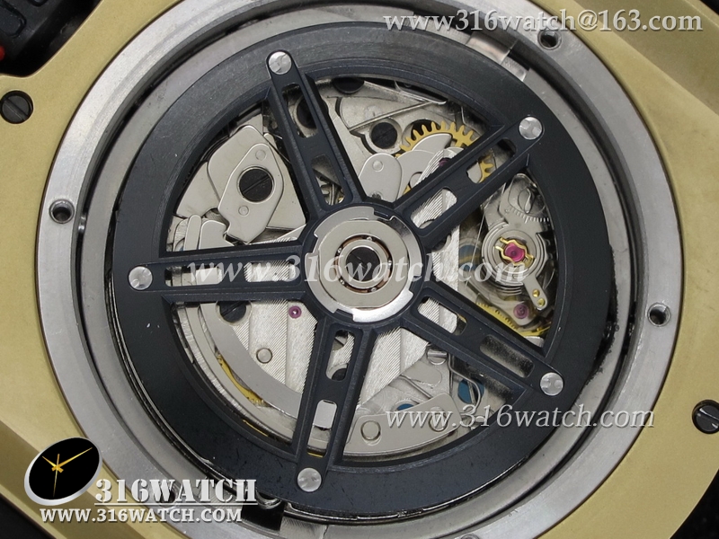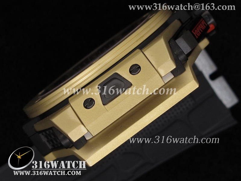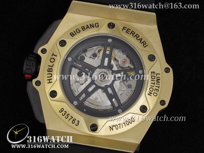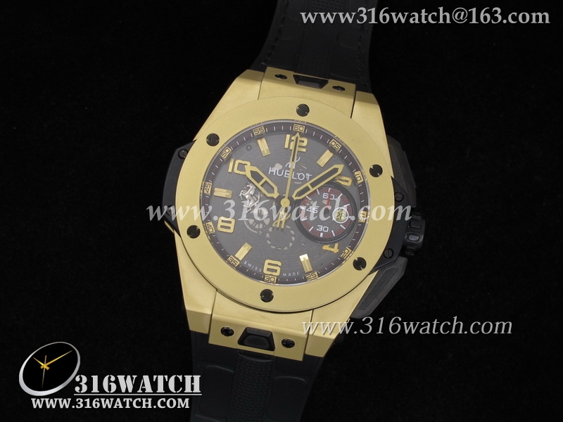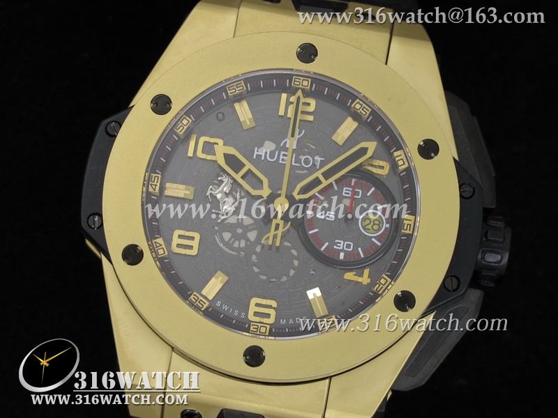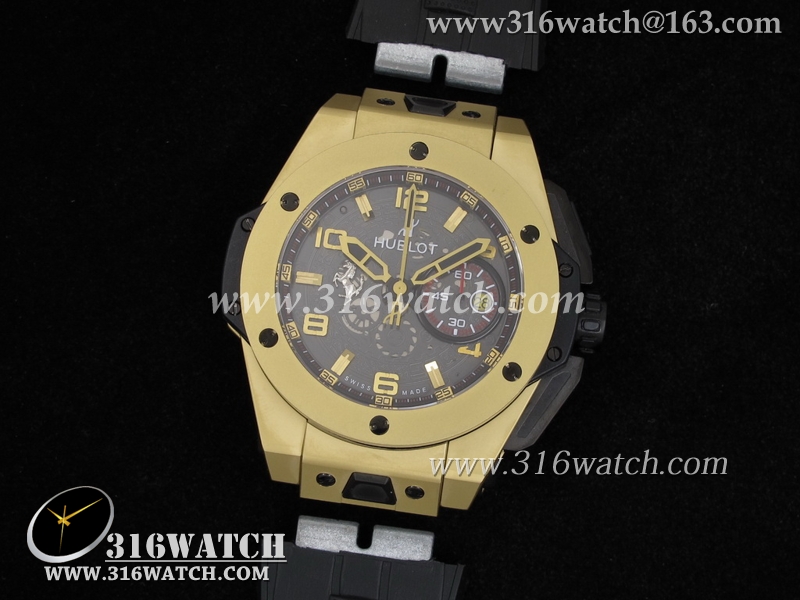 高仿宇舶Hublot-大爆炸限量版系列 国王权力法拉利限量版 18k镀黄金表壳 灰色表盘亚洲7753计时机械表 HB0095