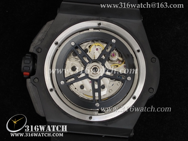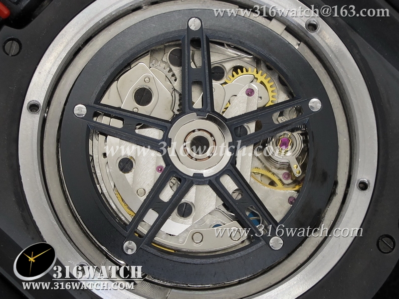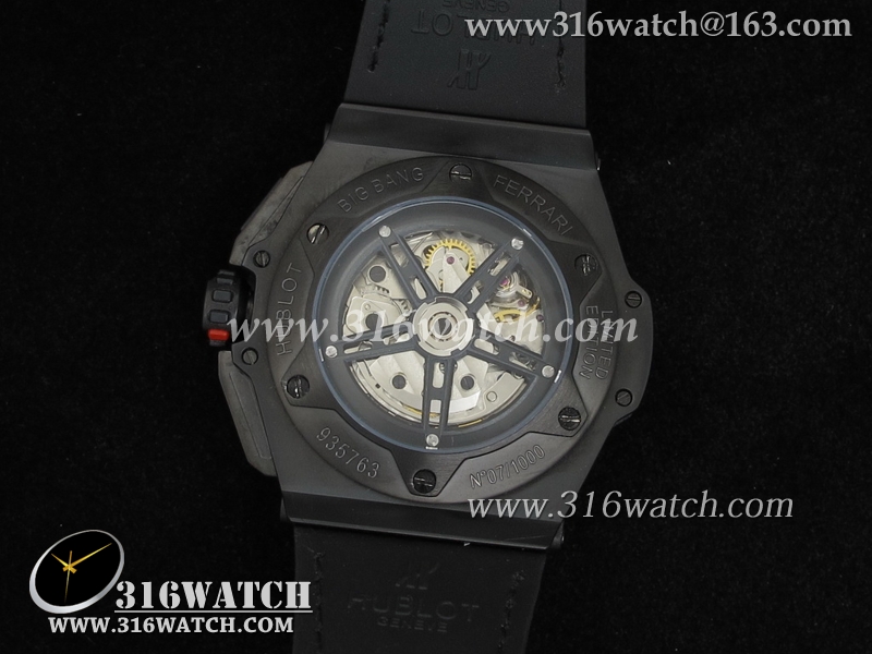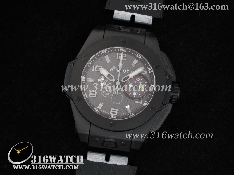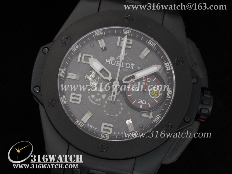 高仿宇舶Hublot-大爆炸限量版系列 国王权力法拉利限量版黑色PVD壳 灰色表盘 黑色橡胶表带 亚洲7753计时机械表 HB0093