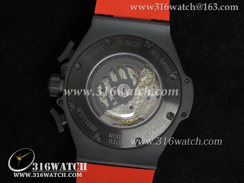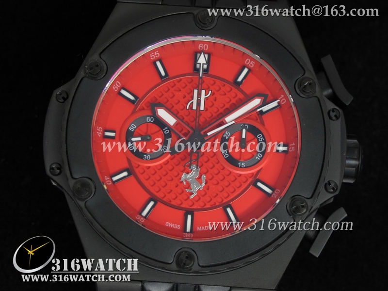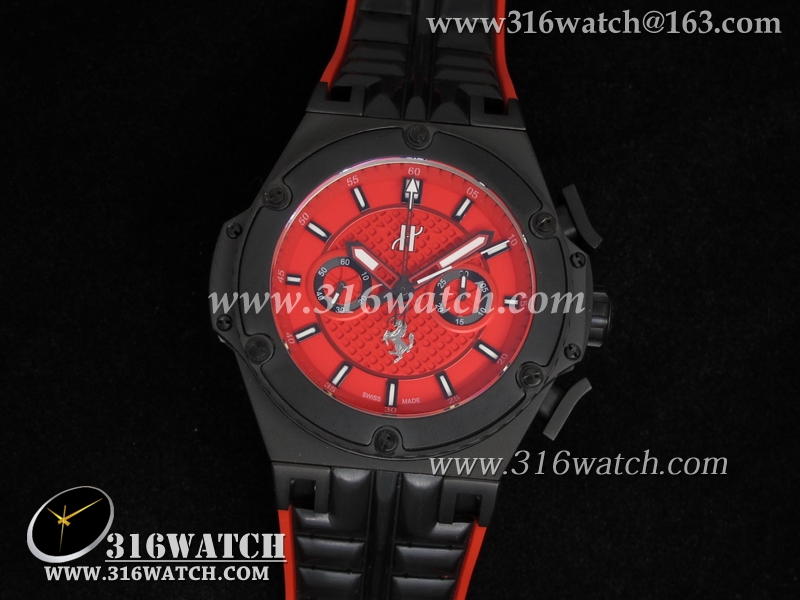 高仿宇舶Hublot-大爆炸限量版系列 国王权力法拉利限量版 黑色PVD壳 红色表盘 亚洲7750计时机械表 HB0087