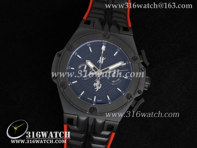 高仿宇舶Hublot-大爆炸限量版系列 国王权力法拉利限量版 黑色PVD壳 黑色格纹表盘 亚洲7750计时机械表 HB0085