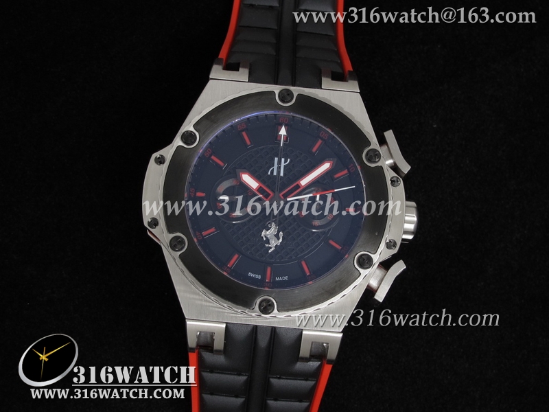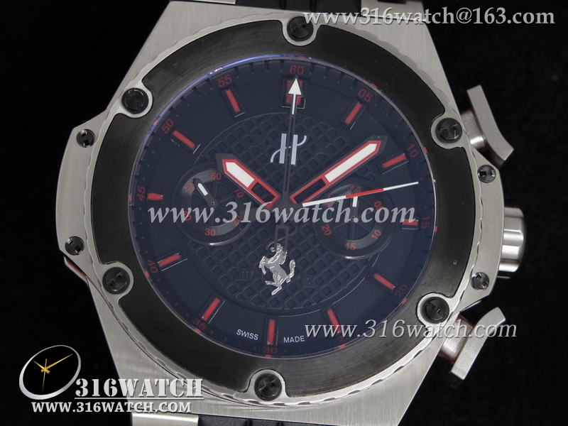 高仿宇舶Hublot-大爆炸限量版系列 国王权力法拉利限量版 黑色格纹表盘 黑色橡胶表带 亚洲7750计时机械表 HB0083