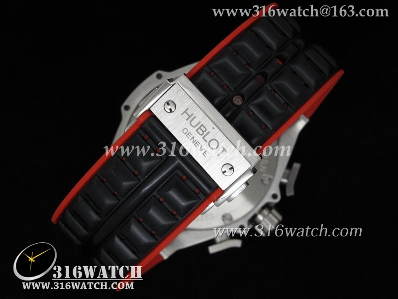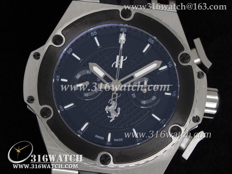 高仿宇舶Hublot-大爆炸限量版系列 国王权力法拉利限量版 黑色格纹表盘 黑色橡胶表带 亚洲7750计时机械表 HB0082