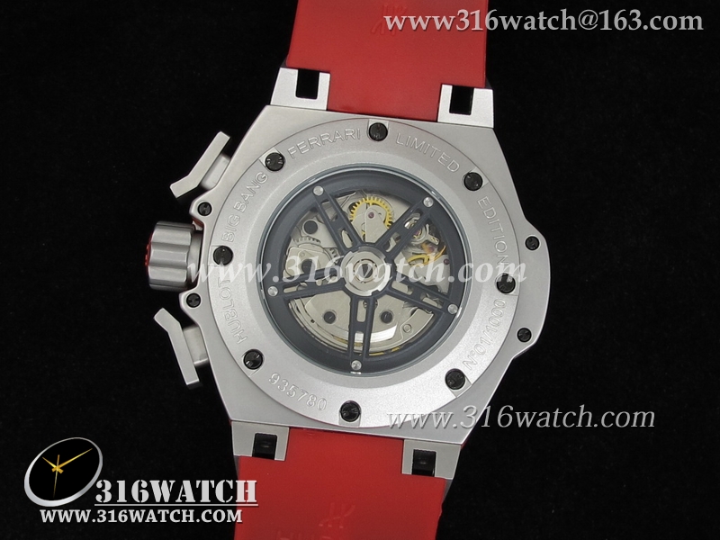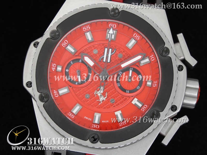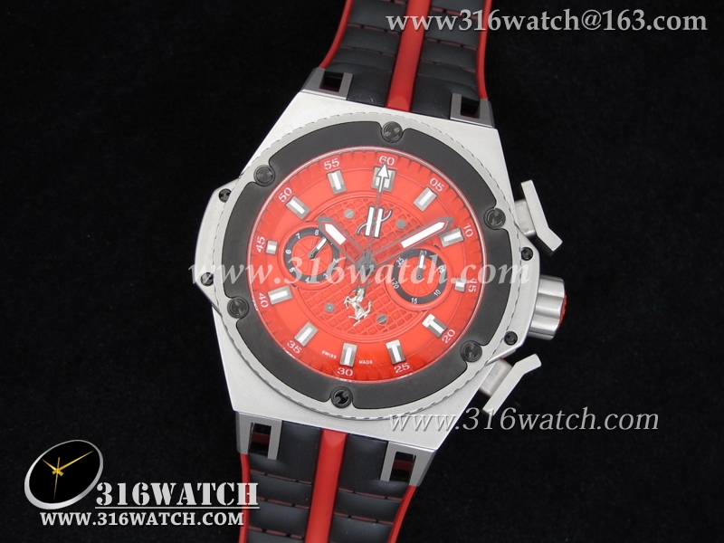 高仿宇舶Hublot-大爆炸限量版系列 国王权力法拉利限量版 红色表盘 黑色/红色橡胶表带 亚洲7750计时机械表 HB0076