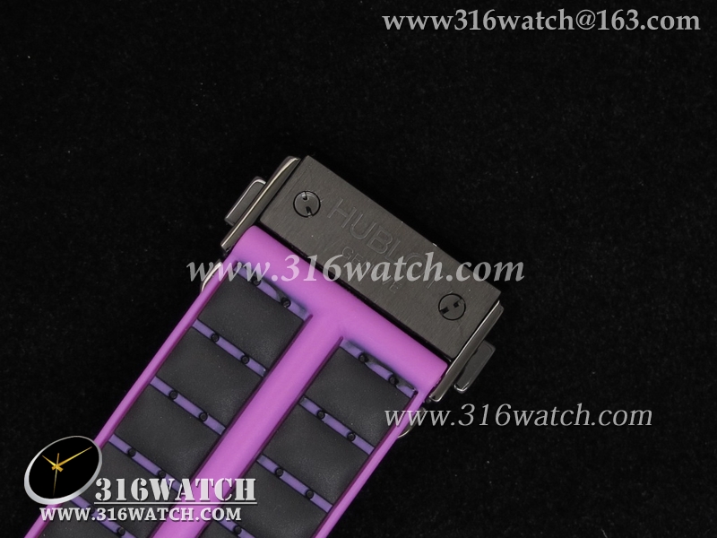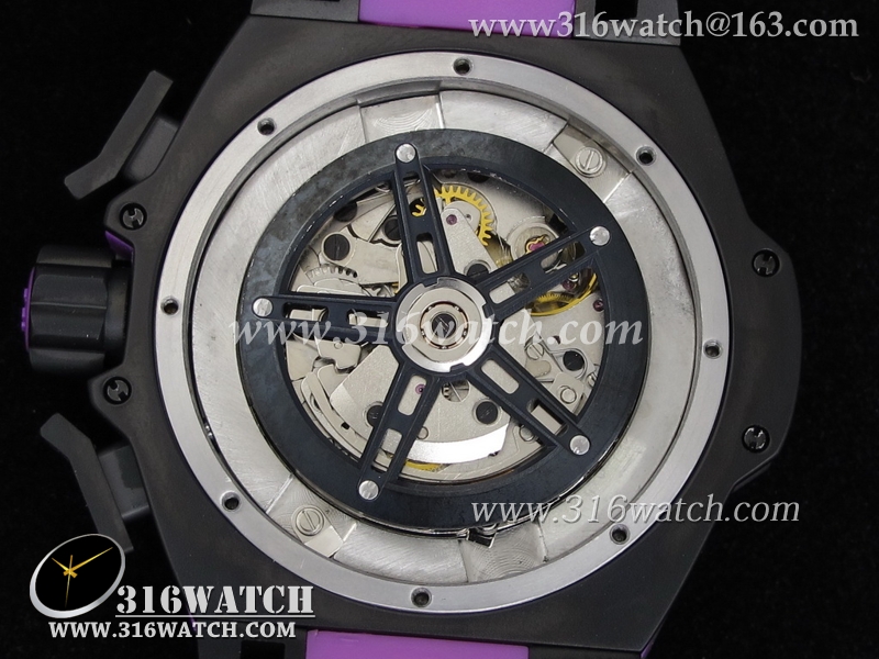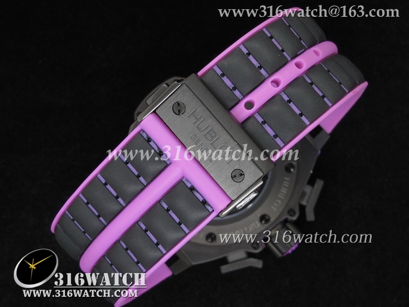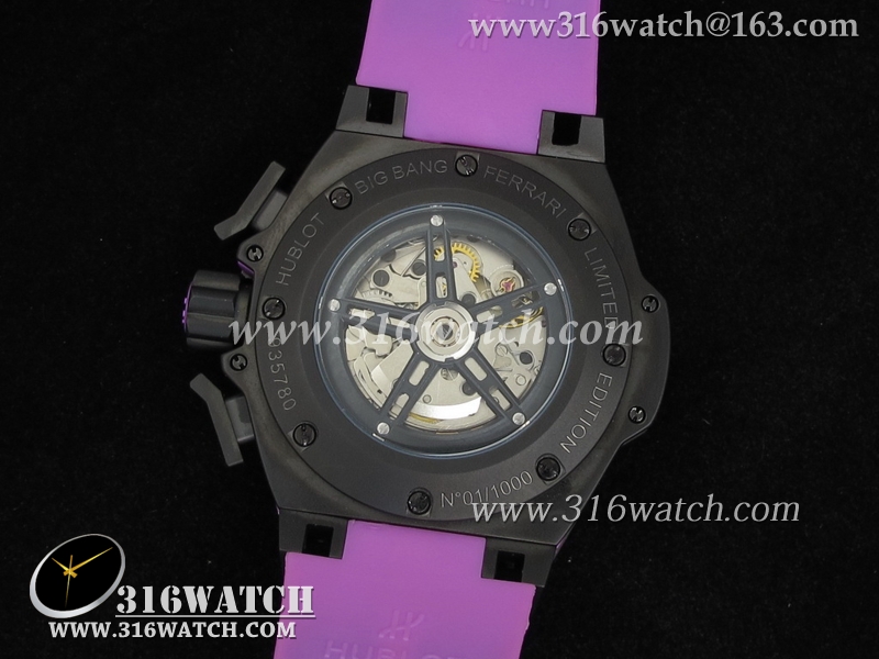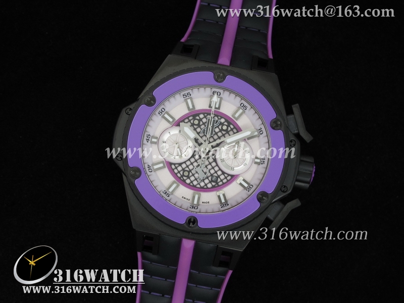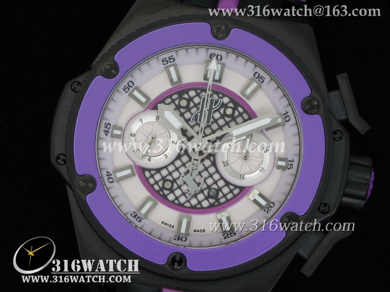 高仿宇舶Hublot-大爆炸限量版系列 国王权力法拉利限量版 PVD壳白色表盘 黑色/紫色橡胶表带 亚洲7750计时机械表 HB0075
