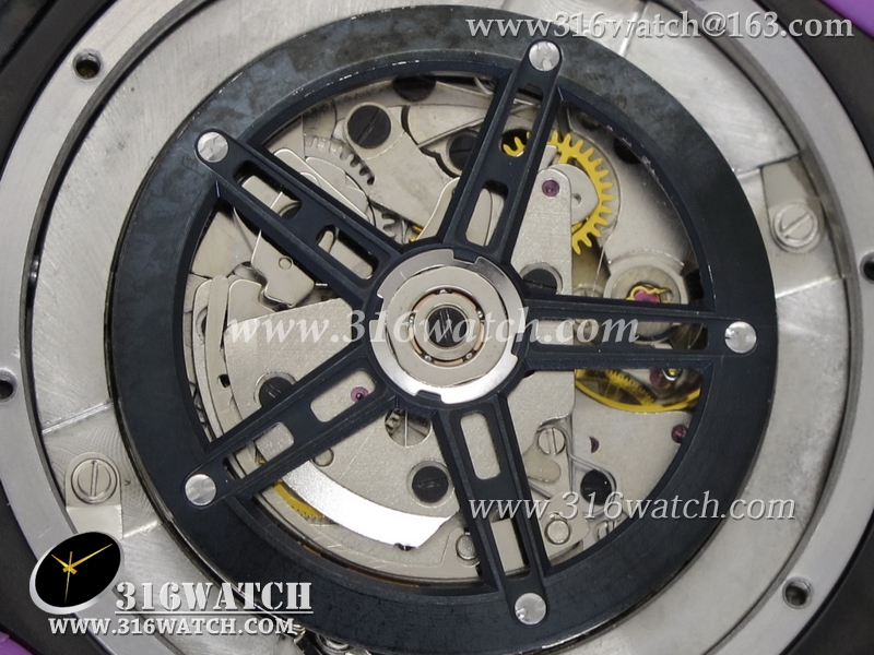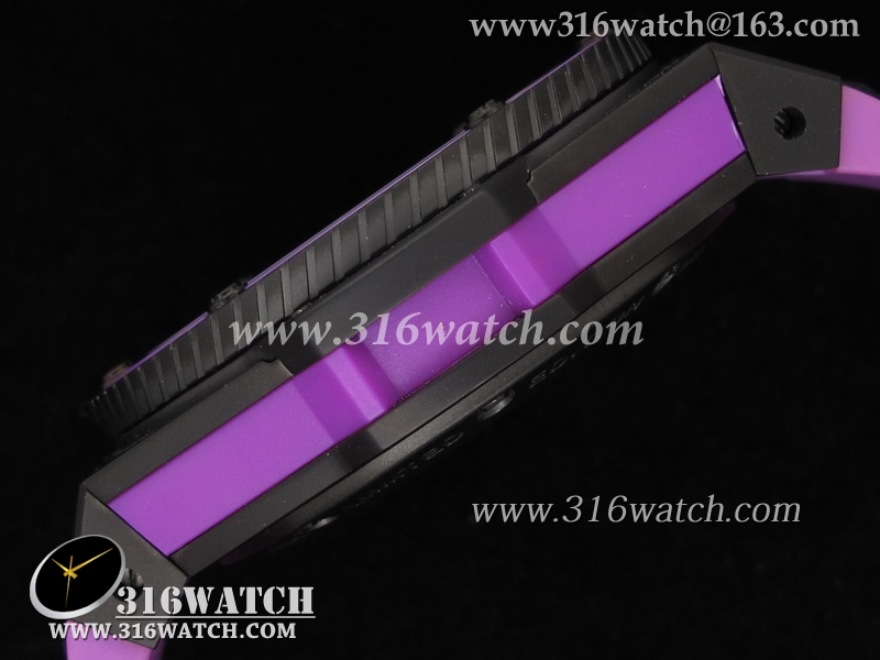 316F不锈钢,黑色PVD镀层表壳,紫色陶瓷边框