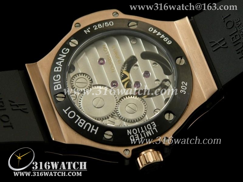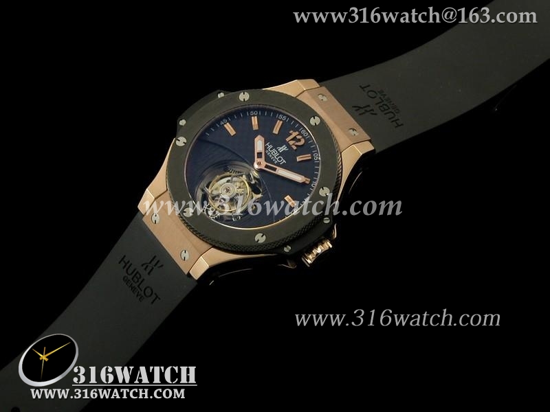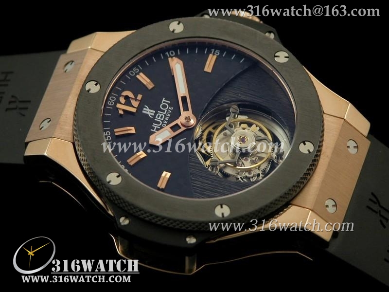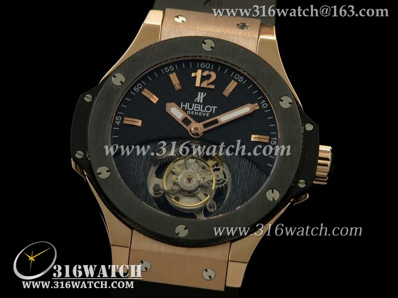 宇舶Hublot-爆炸陀飞轮系列 18 k玫瑰金电镀 陶瓷边框 黑色橡胶表带 亚洲海欧飞轮机芯 高仿超A宇舶手表 HB0112