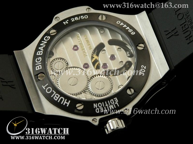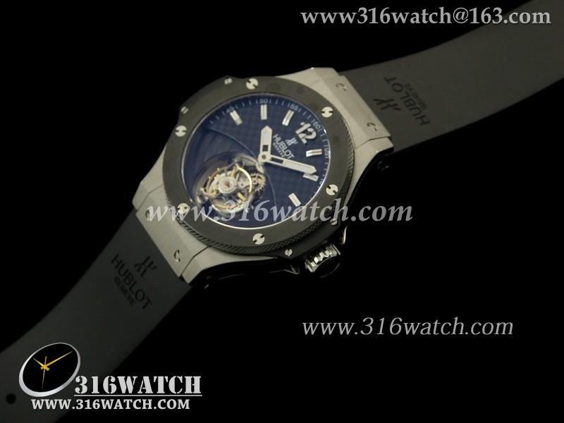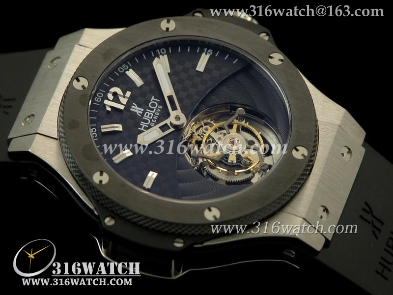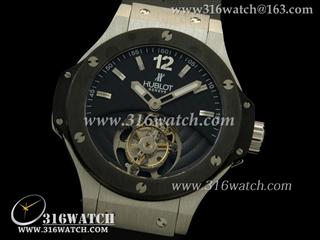 宇舶Hublot-大爆炸陀飞轮系列 黑色表盘 陶瓷边框 黑色橡胶表带 亚洲海欧飞轮机芯 高仿宇舶顶级版 HB0110