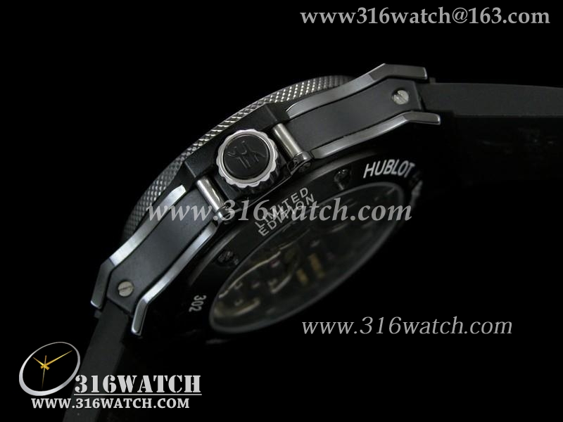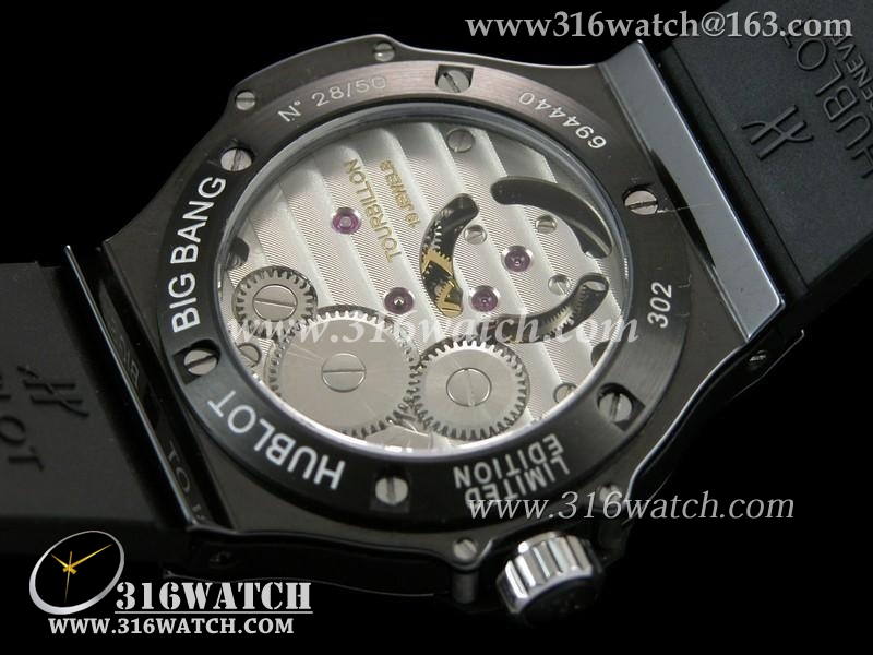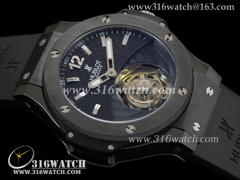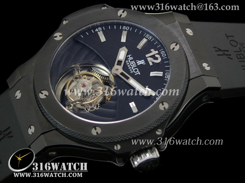超A 宇舶Hublot-大爆炸陀飞轮系列 黑色格仔表盘 黑色橡胶表带 亚洲海欧飞轮机芯 HB0108