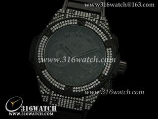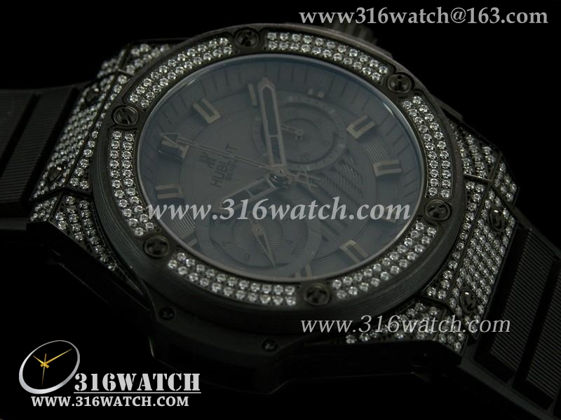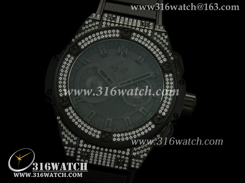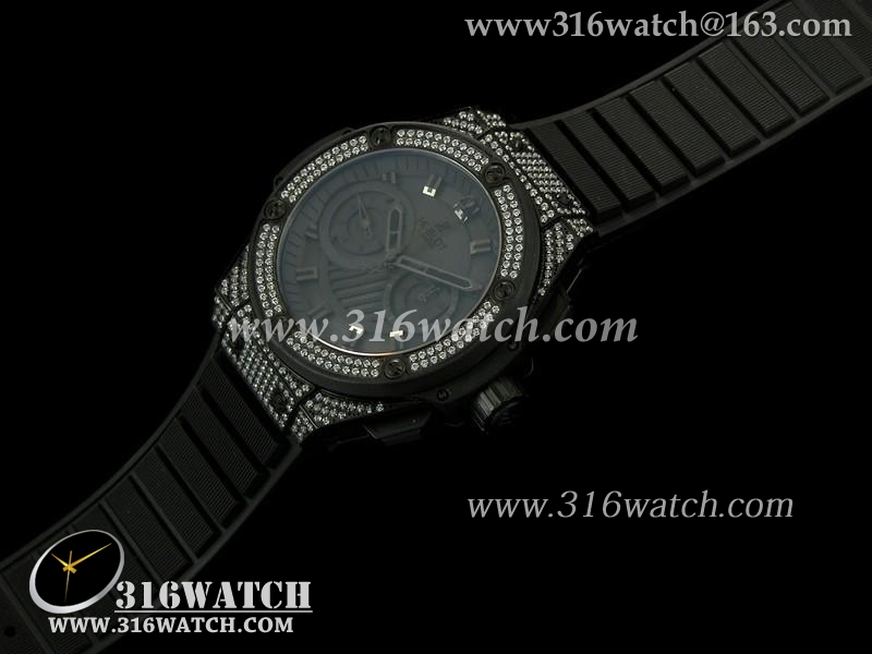 宇舶Hublot-王者至尊48MM系列 电镀PVD/镶钻表壳 黑色表盘 黑色橡胶表带 亚洲7750计时机芯 高仿1:1宇舶手表 HB0182