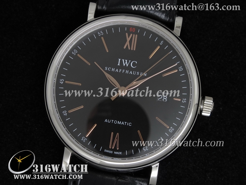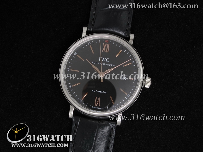 高仿万国IWC 柏涛菲诺系列 IW356304 黑色表盘 黑色皮带 亚洲2892机芯 IWC0053